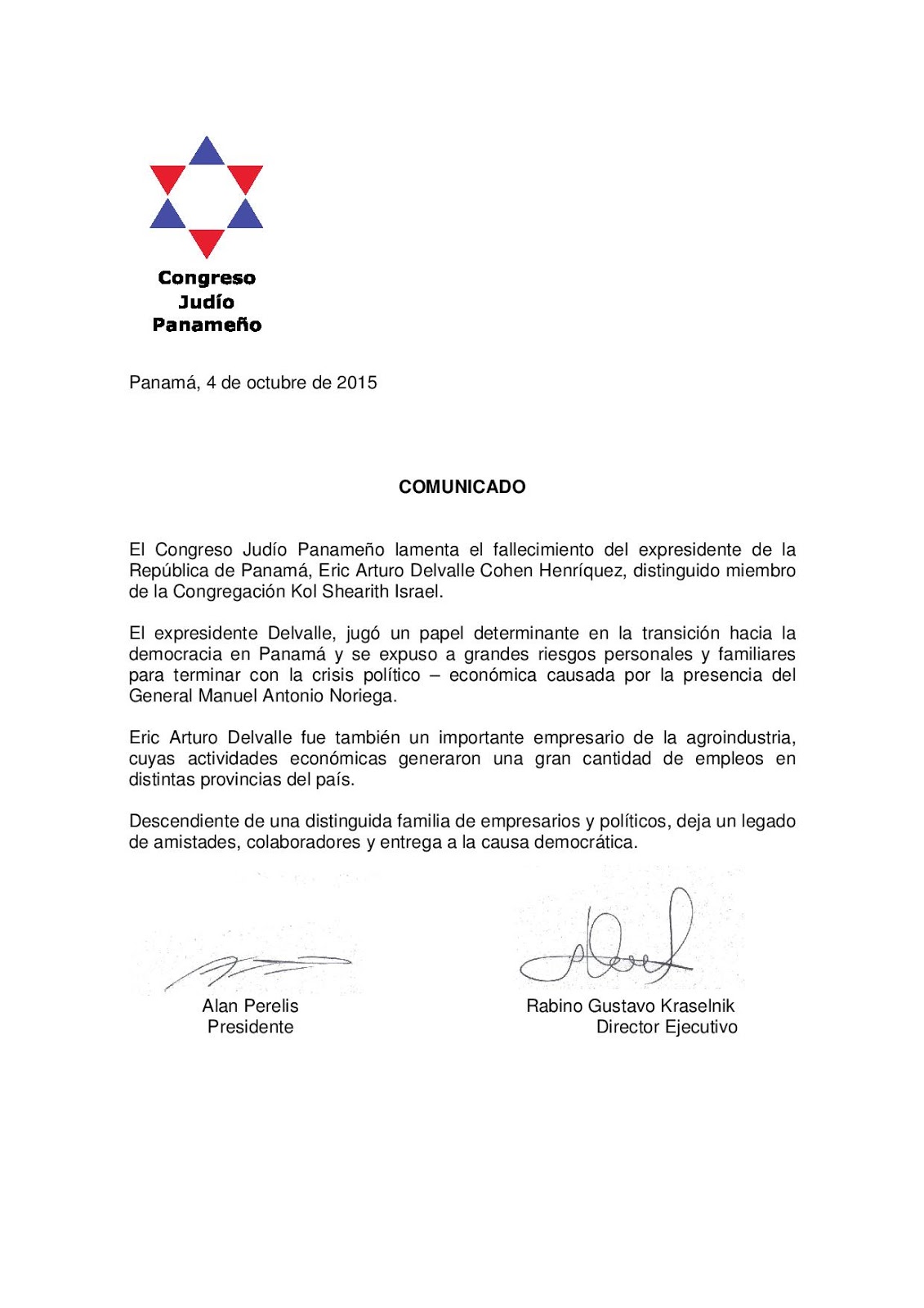 Congreso Judío Panameño lamenta fallecimiento del expresidente Eric Arturo DelvalleNoticias, Sin categoría / Por Kol Shearith Israel / CJP, ksi