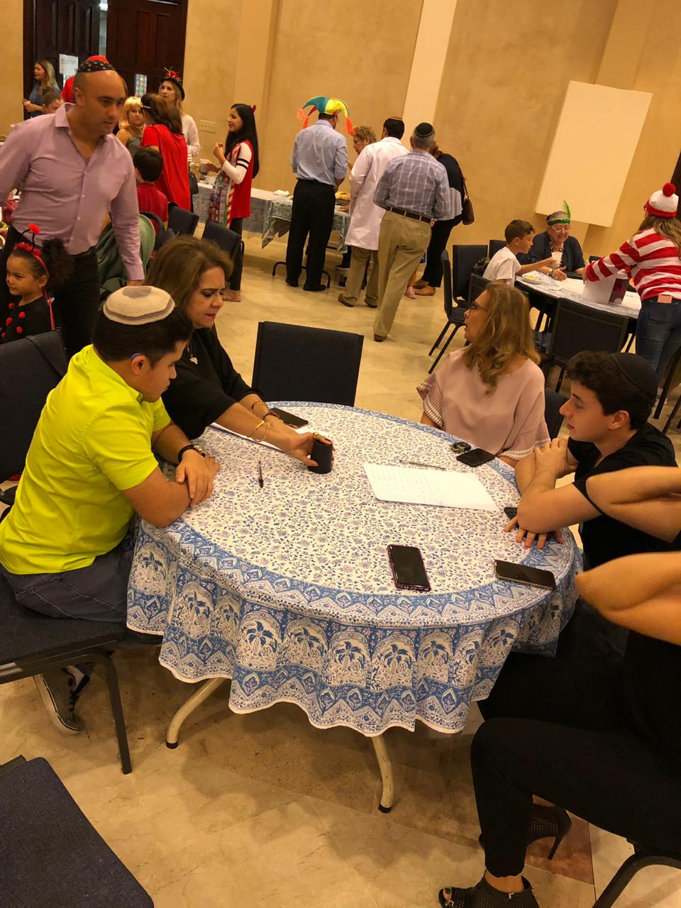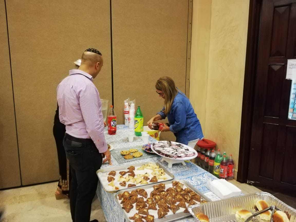 La propuesta comenzó en el Salón Melhado en donde los invitados jugaron juegos con dados y degustaron deliciosos platos del patio de comidas organizado por la HKSI, además de exquisitos Oznei Hamán preparados en las clases de Café VeLimud junto a las chefs Rachael Policart y Rebecca Smadja Bern.