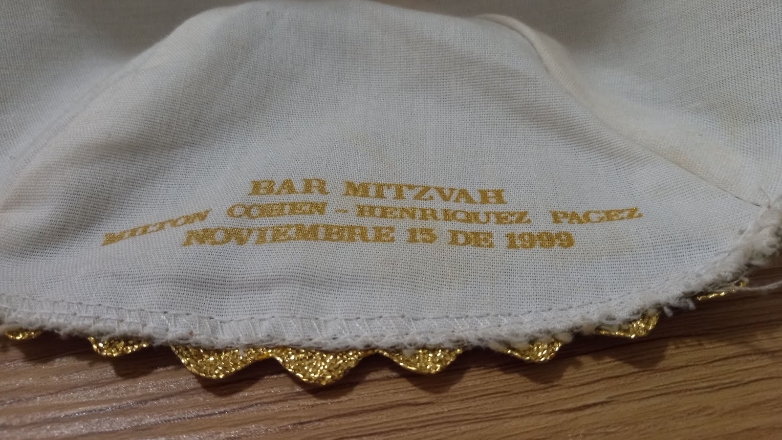 Recientemente pudimos reunir a alguien, que en ese entonces era un niño y ahora es un hombre, con su kipá de Bar Mitzvá. Se trata de Milton Cohen-Henríquez III, a quien reunimos con su kipá utilizado el 15 de noviembre de 1999, en su Bar Mitzvá hace 21 años. ¡Un tardío Mazel Tov, Milton!
