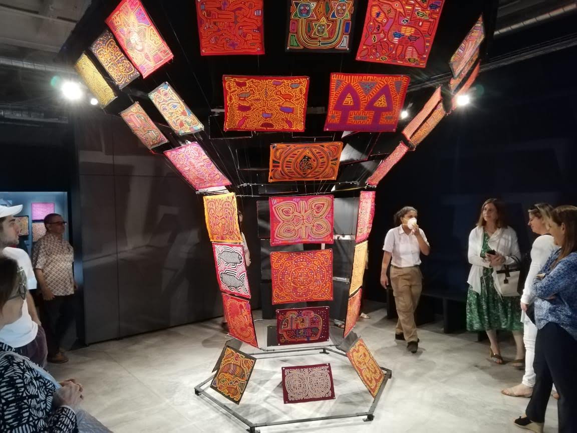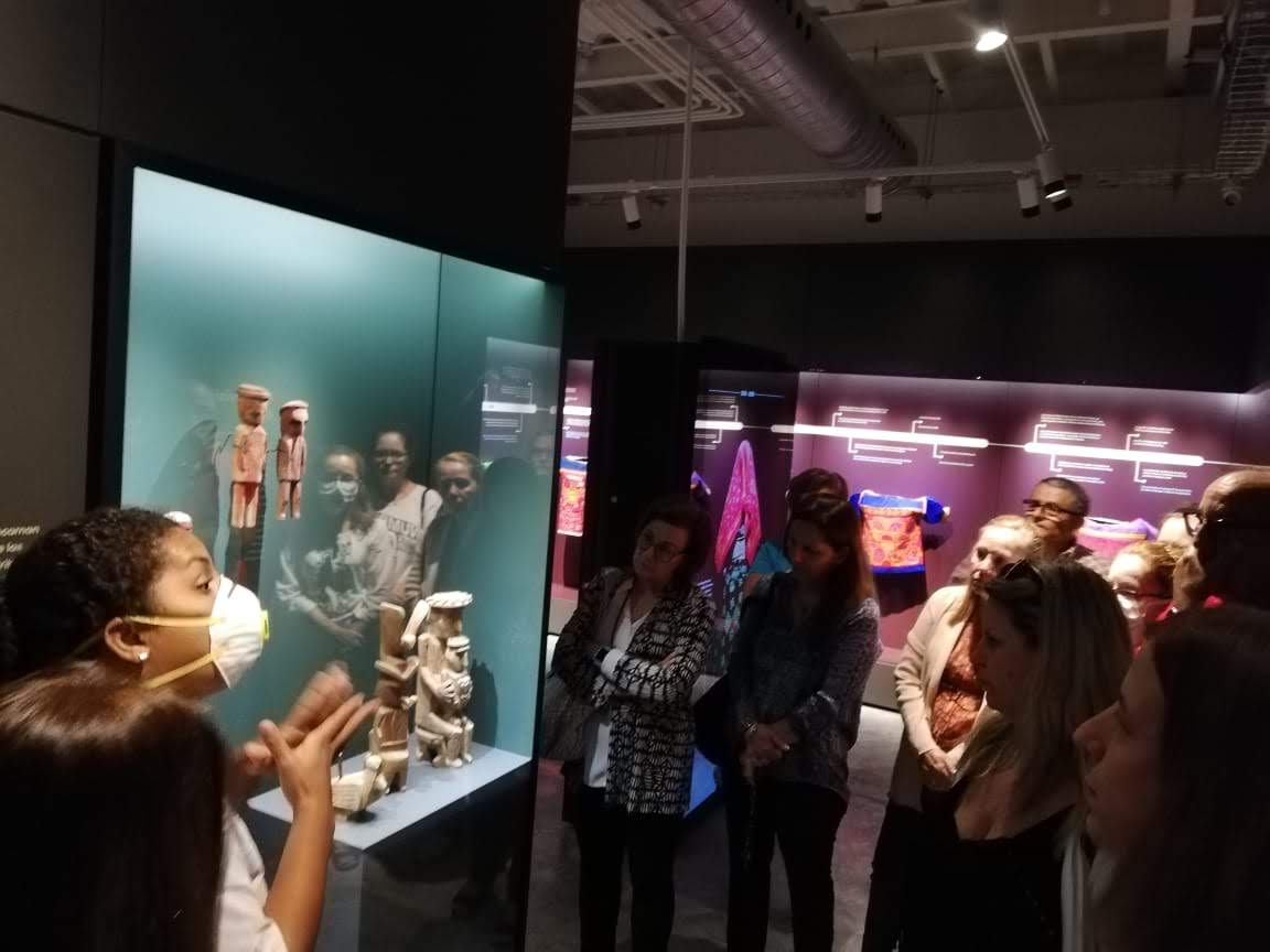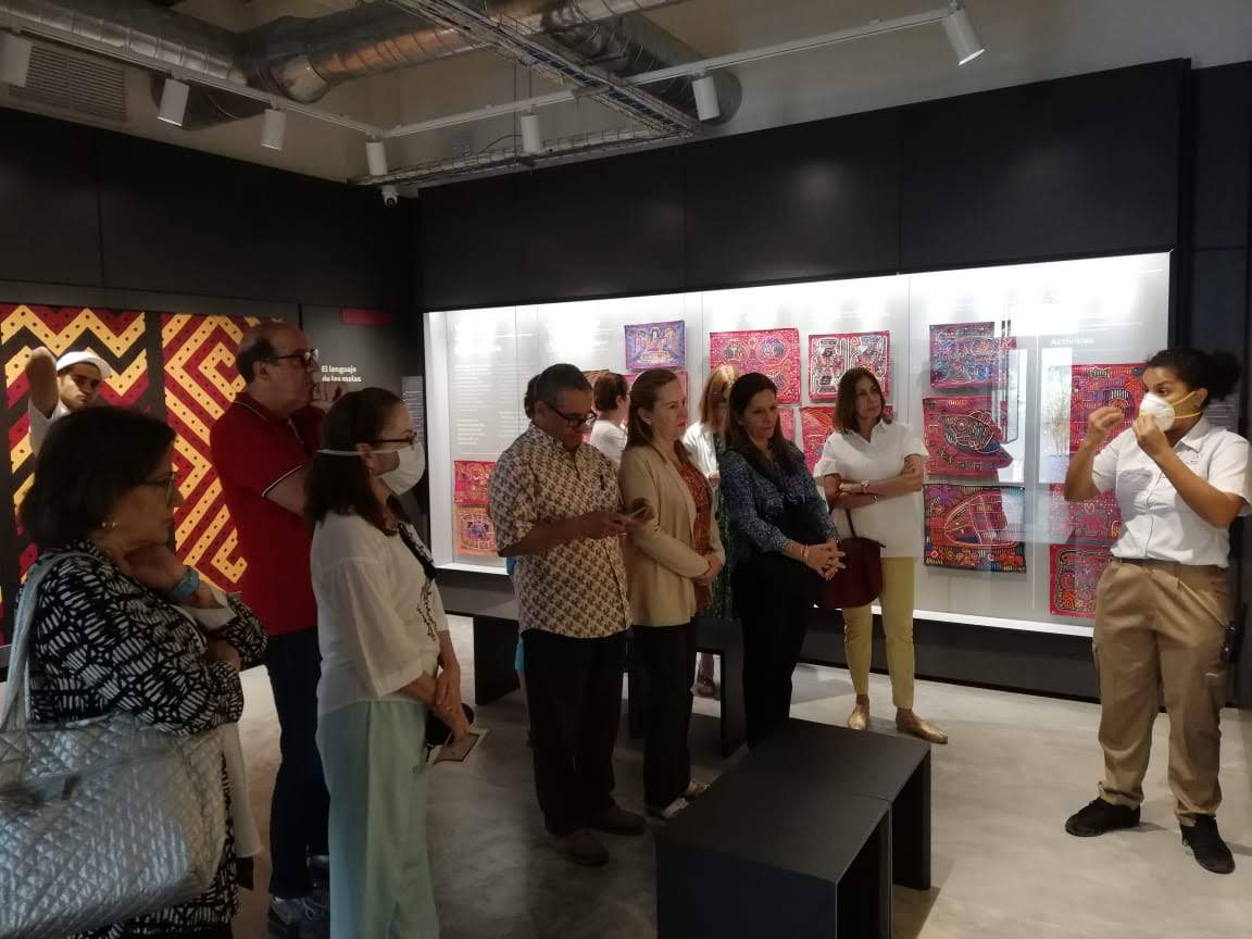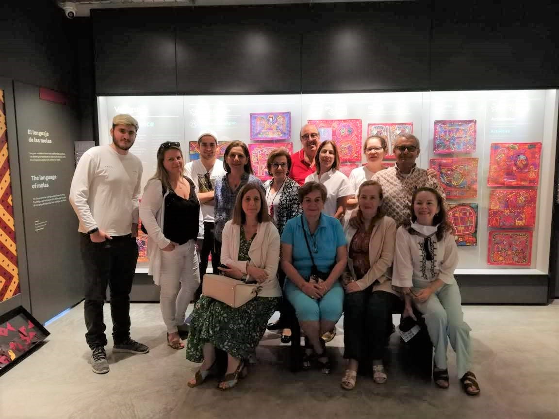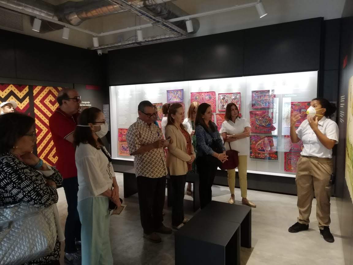 El grupo, compuesto por 13 personas, recorrió las cinco salas temáticas del museo: textura y evolución, cosmovisión, entorno o figurativo, molas deconstruidas o en capas, y molas narrativas.