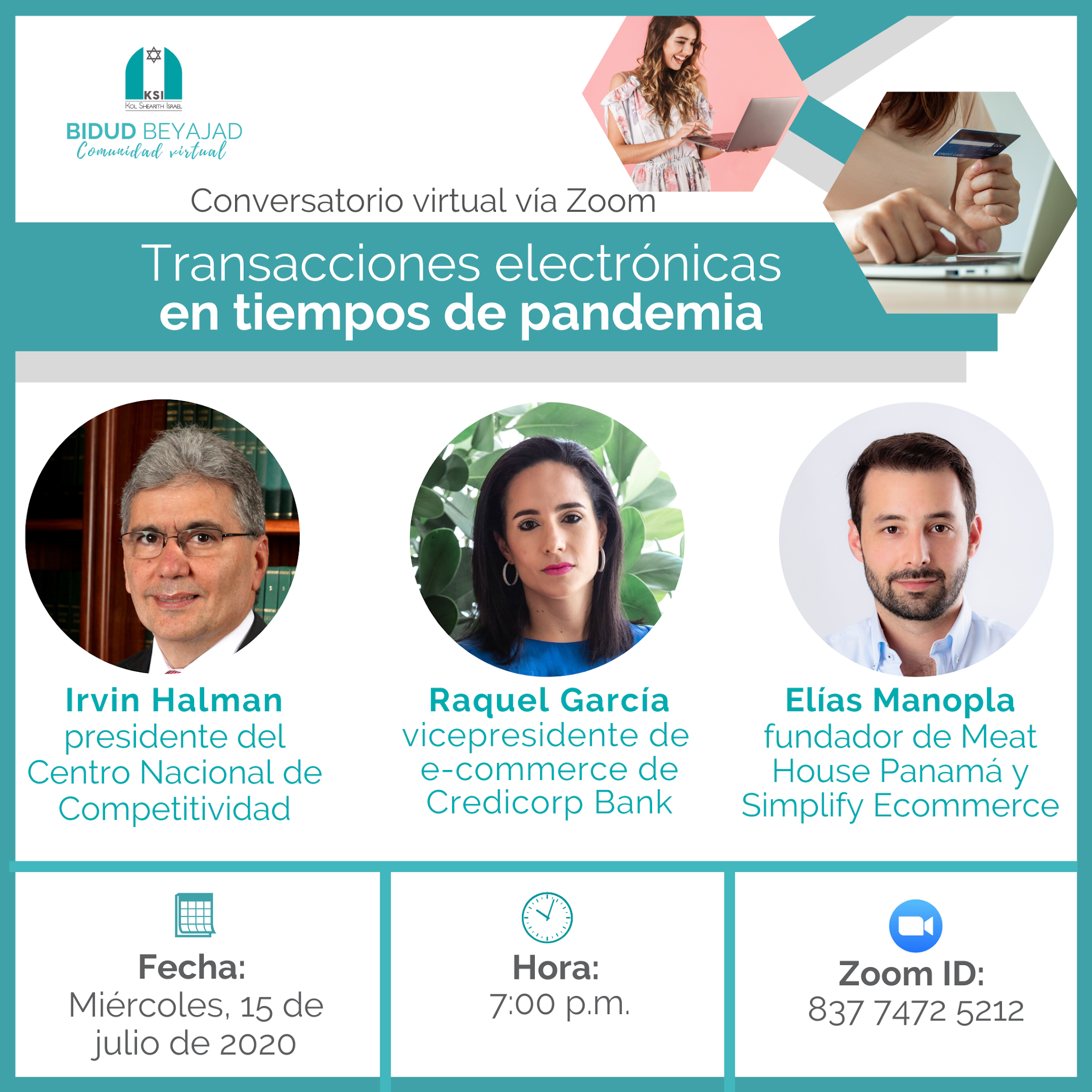 Por esta razón decidimos conversar sobre e-government, e-banking y e-commerce con Irvin Halman, presidente del Centro Nacional de Competitividad; Raquel García, vicepresidente de e-commerce de Credicorp Bank, y Elías Manopla, fundador de Meat House Panamá y Simplify Ecommerce.
