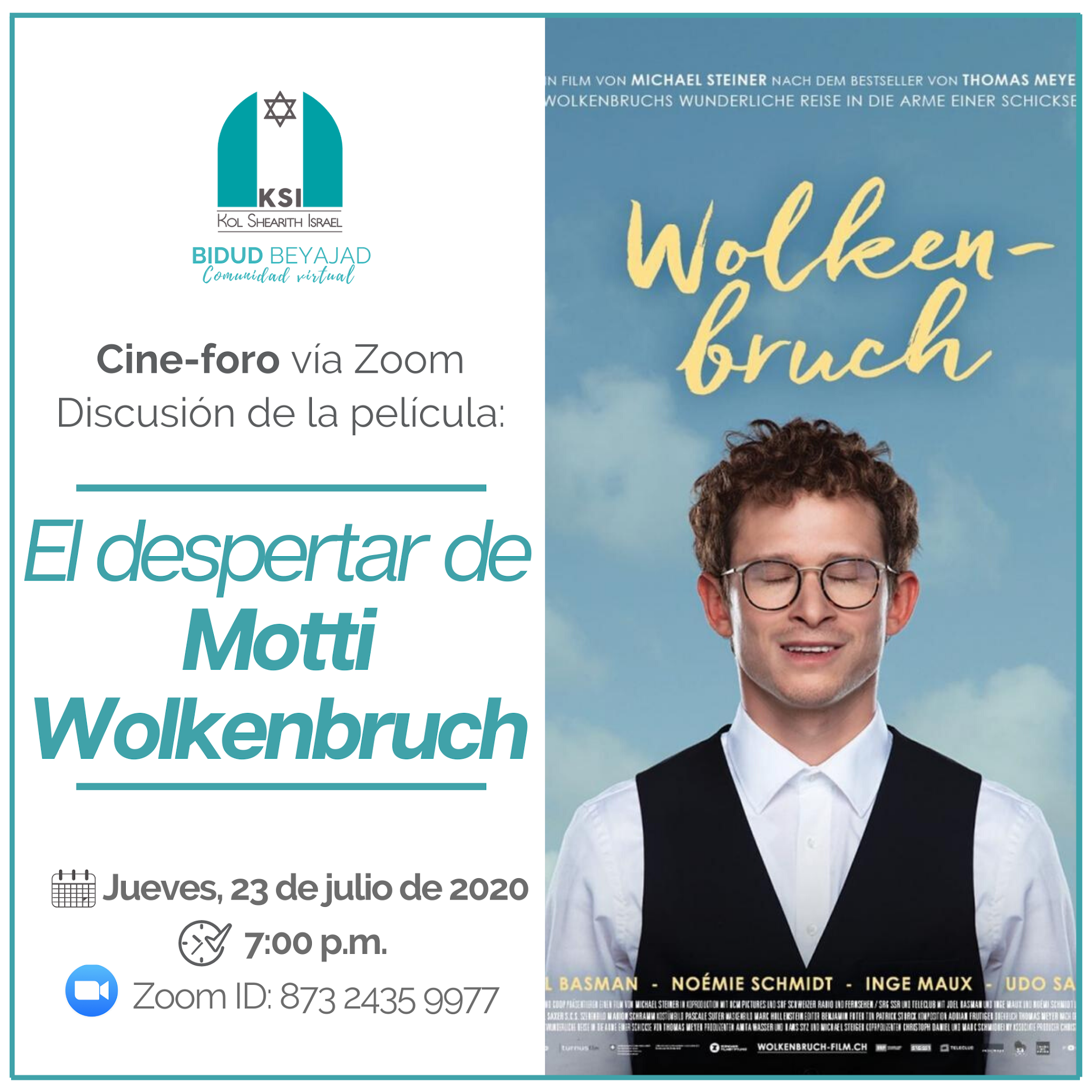 El pasado jueves, 23 de julio de 2020, la comunidad KSI se reunió para conversar sobre la película El despertar de Motti Wolkenbruch en una nueva edición del cine-foro semanal de Bidud Beyajad.