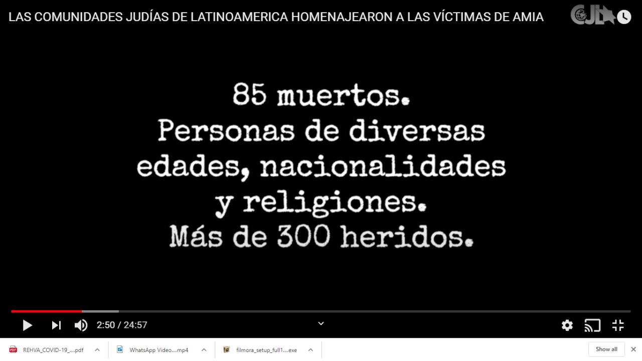 Este acto virtual, organizado por el Congreso Judío Latinoamericano (CJL), se realizó 26 años después de que una bomba destruyera un edificio de la comunidad judía de Buenos Aires, costándole la vida a 85 personas y dejando 300 heridos.
