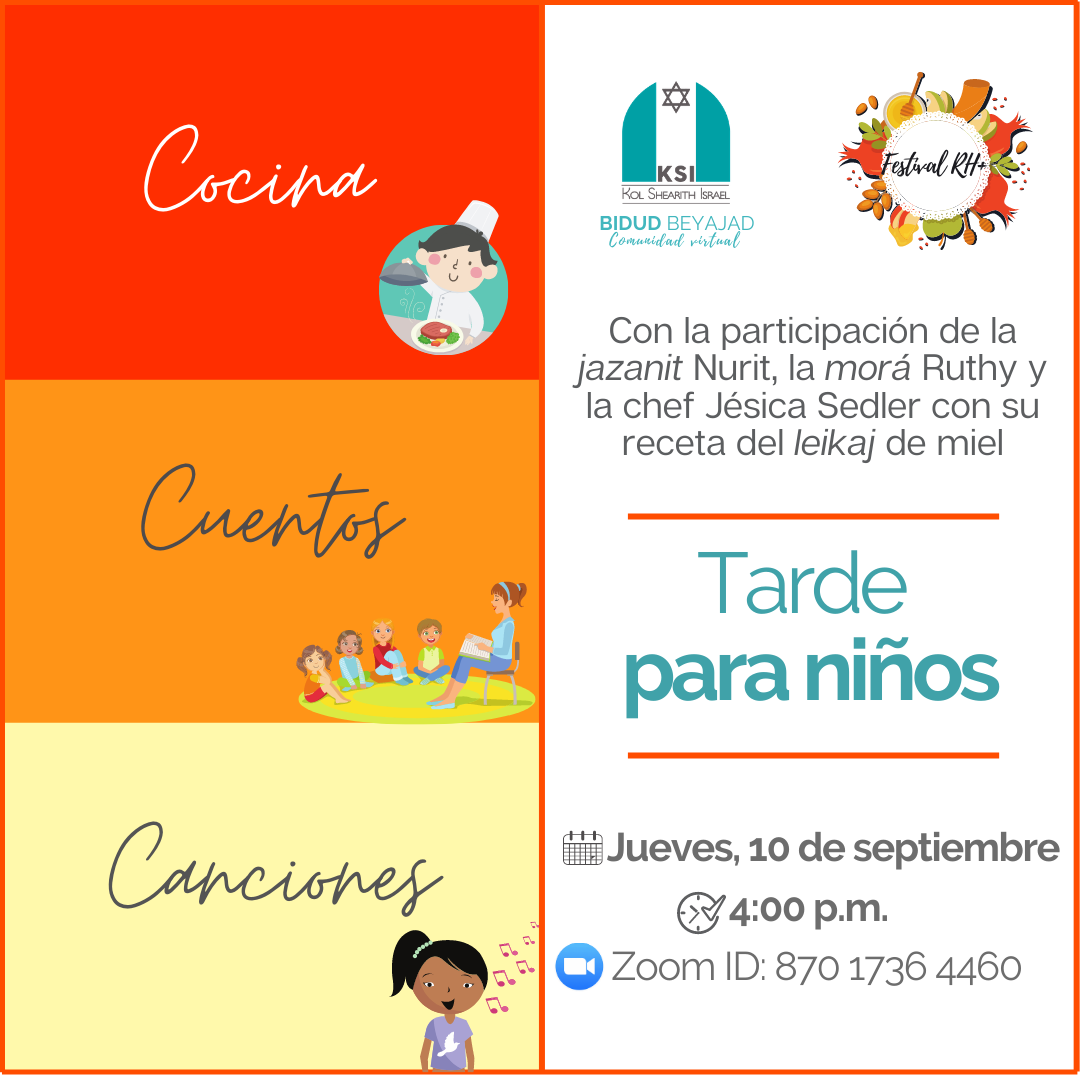 En esta actividad, la chef Jésica Sedler enseñó el paso a paso para preparar el tradicional leikaj de miel. Además, la morá Ruthy leyó un cuento, mientras que la jazanit Nurit entretuvo a los pequeños con música de Rosh Hashaná.