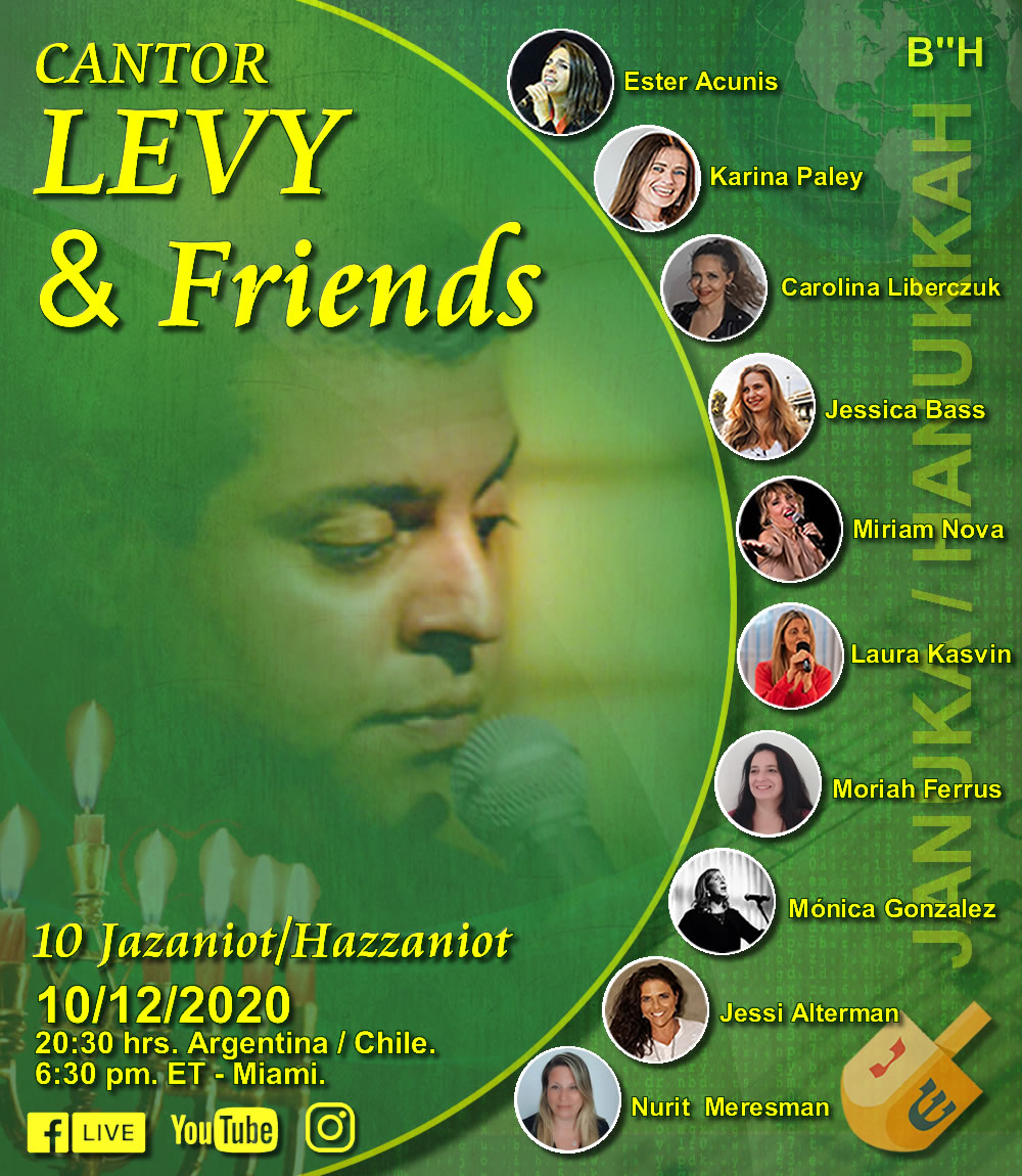 El pasado jueves, 10 de diciembre de 2020, nuestra querida jazanit Nurit Meresman-Azoulay tuvo una participación especial en el recital Cantor Levy & Friends, organizado por el jazán Andrés Levy en el marco de la festividad de Janucá.
