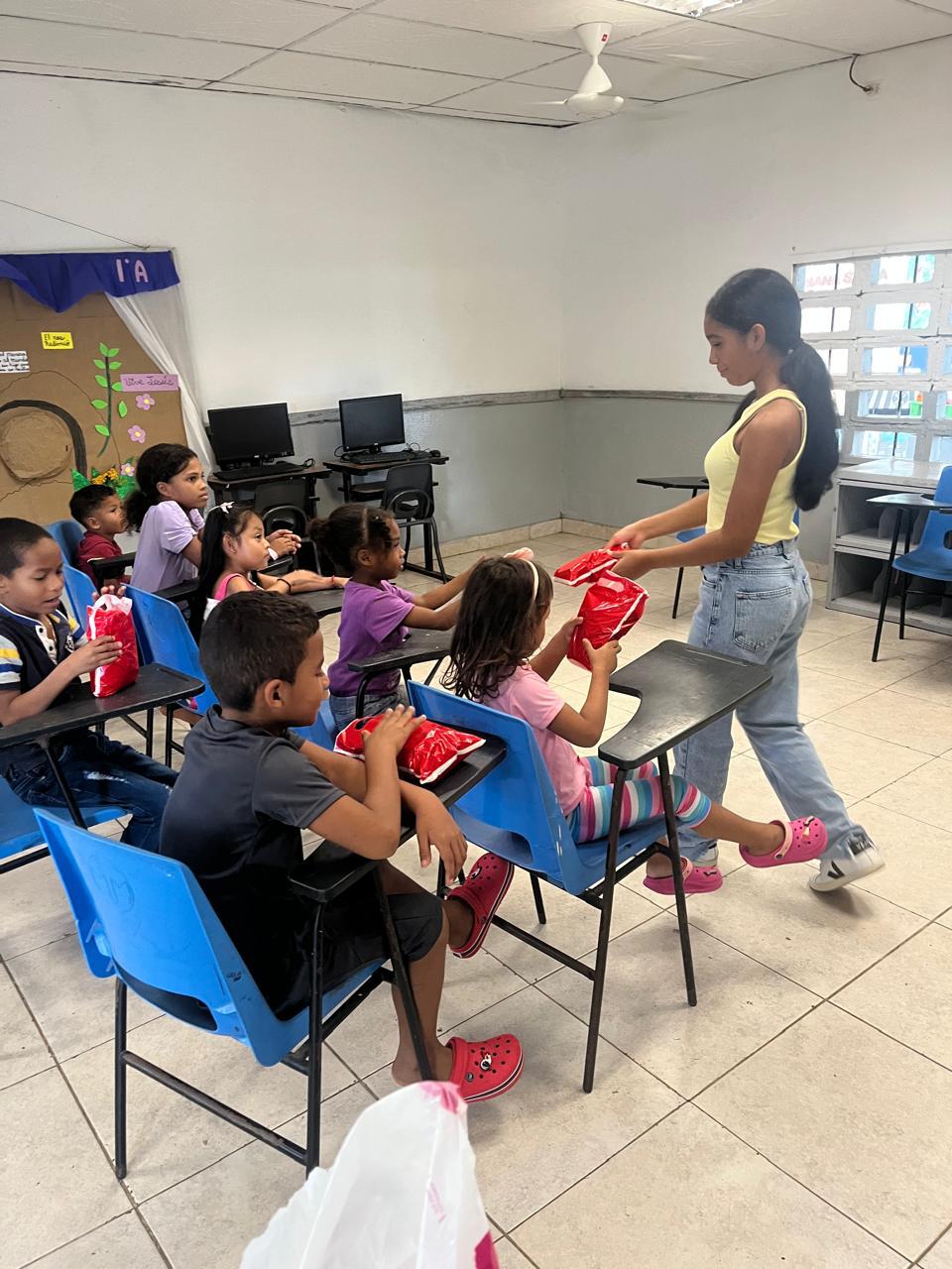 Actividad y creación de rincón de lectura en el salón de 1° grado de la escuela San Oscar Romero ubicada en Las Garzas de Pacora.