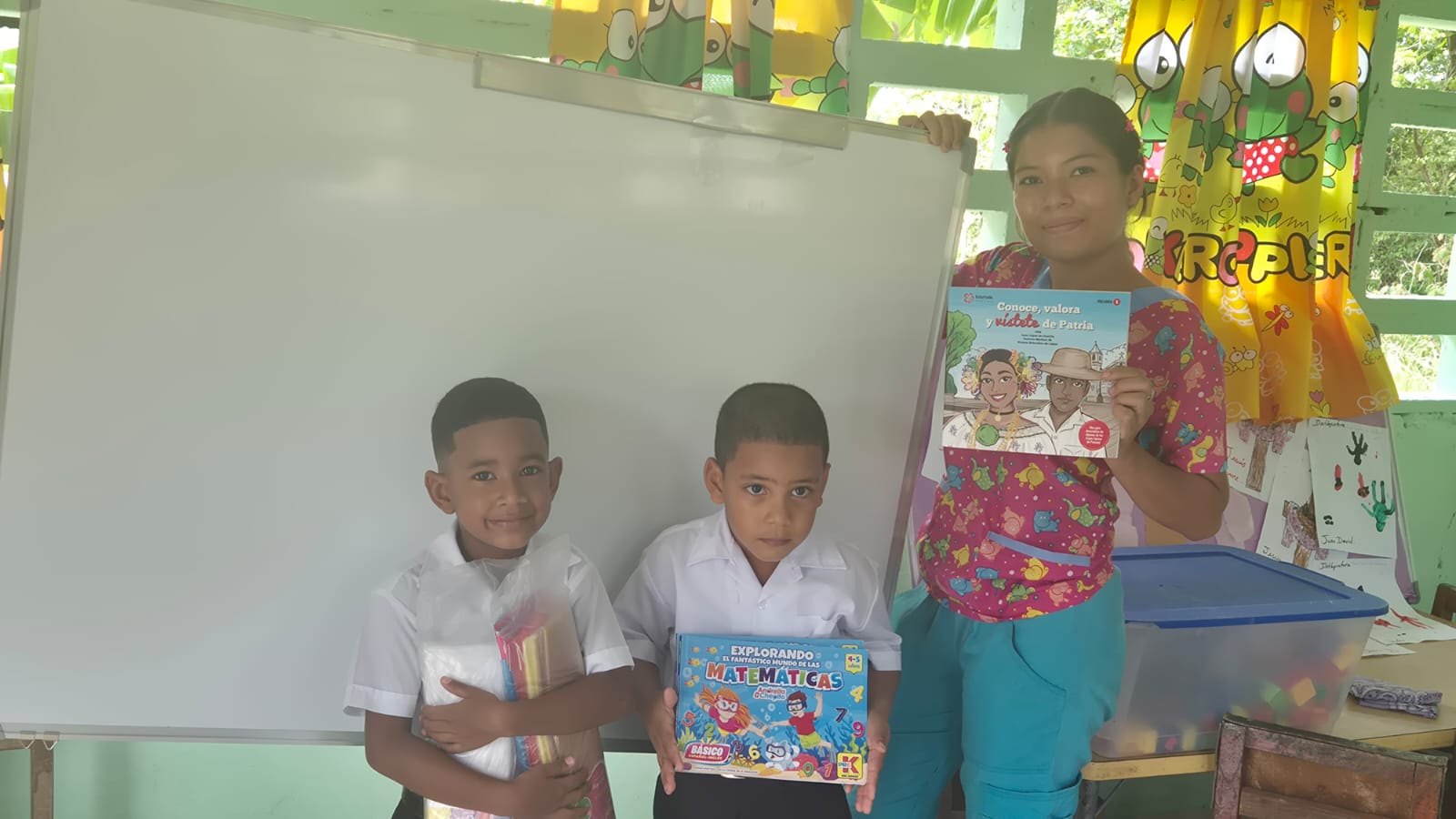 Gracias a la generosa donación de Claudine Henríquez (Compañía Atlas) y Paola Gozlan (Andreita y Chepito), pudimos llevarles libros, juegos, pizarras y material escolar para enriquecer su tarea educativa.