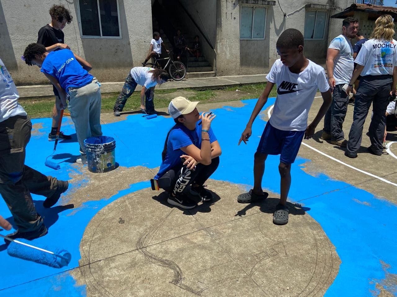 Durante la jornada, trabajaron en equipo con la comunidad local para mejorar las áreas de recreación destinadas a los niños y colaborar con la renovación de la parroquia comunal. Más allá del trabajo físico, lo más valioso fue la conexión humana que se generó: los niños de la comunidad participaron activamente, compartieron sonrisas y juegos, y transmitieron a todos una alegría contagiosa.