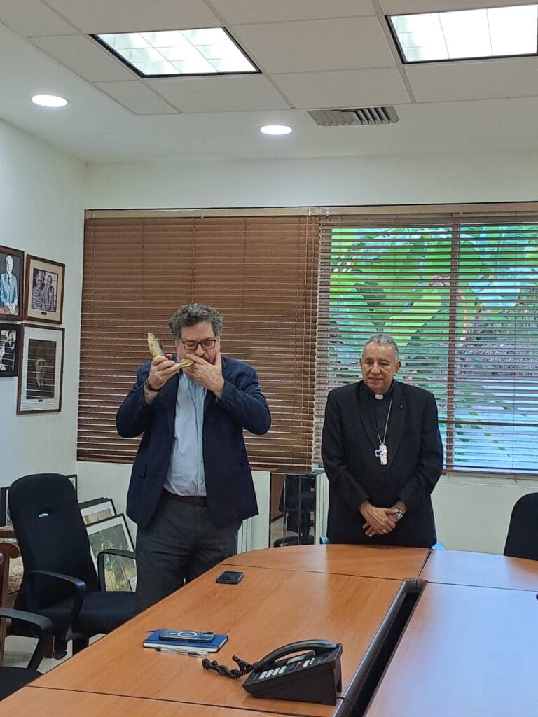 El pasado jueves, 25 de septiembre, el arzobispo metropolitano de Panamá, monseñor José Domingo Ulloa Mendieta, visitó el centro comunitario de la Congregación Kol Shearith Israel para expresar sus deseos de Shaná Tová para este nuevo año 5786 que comienza.
