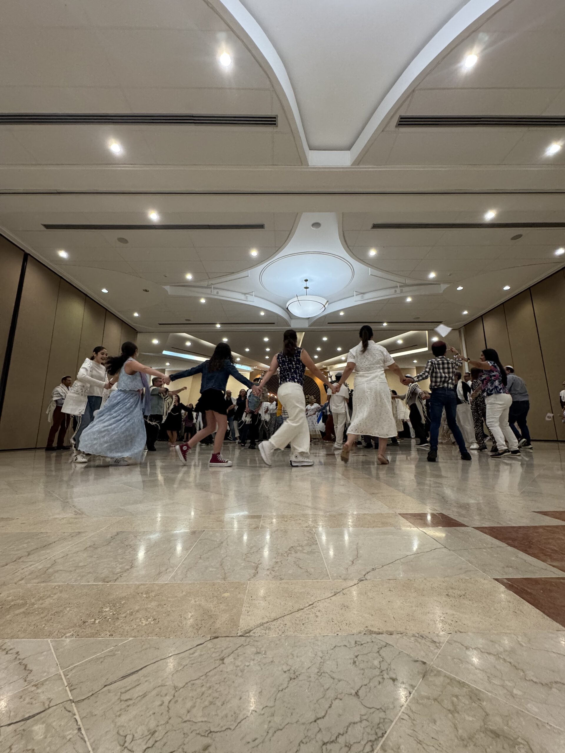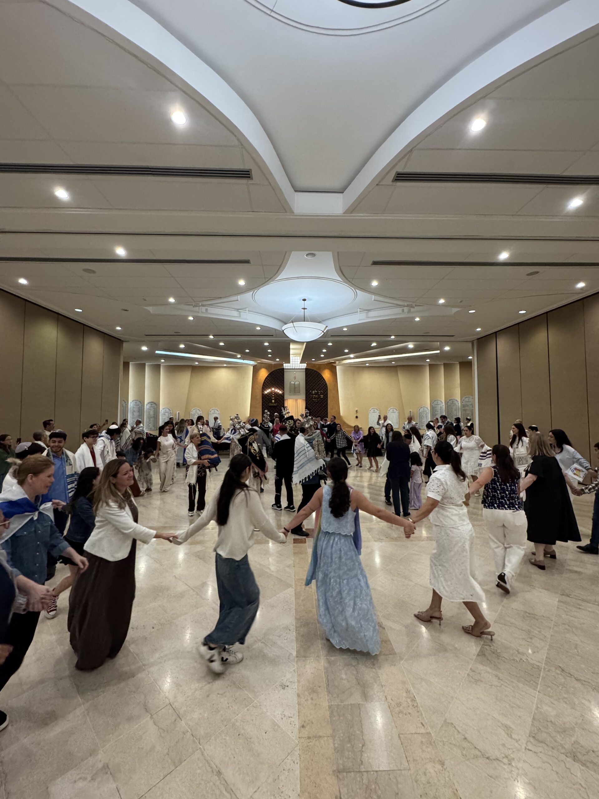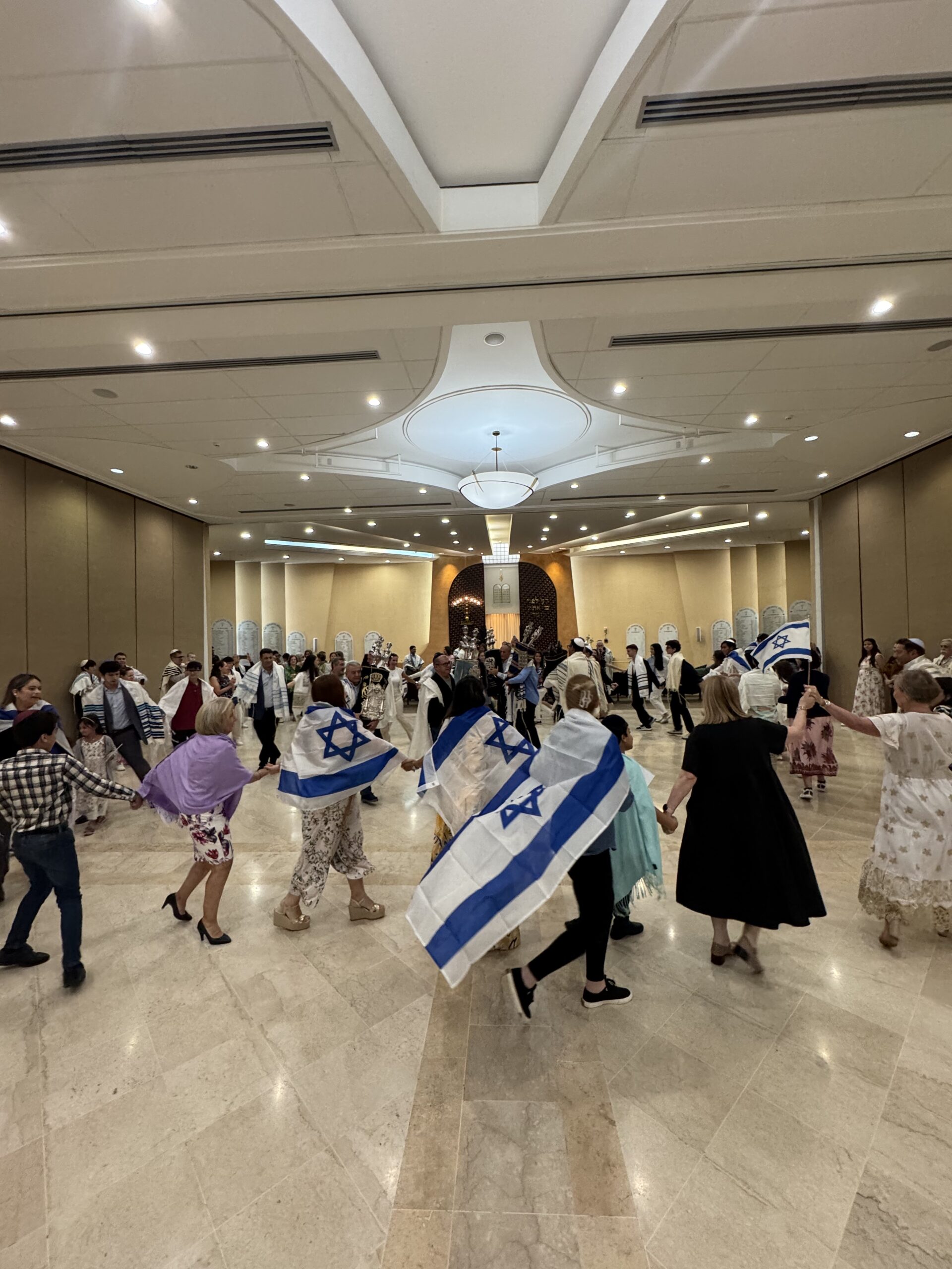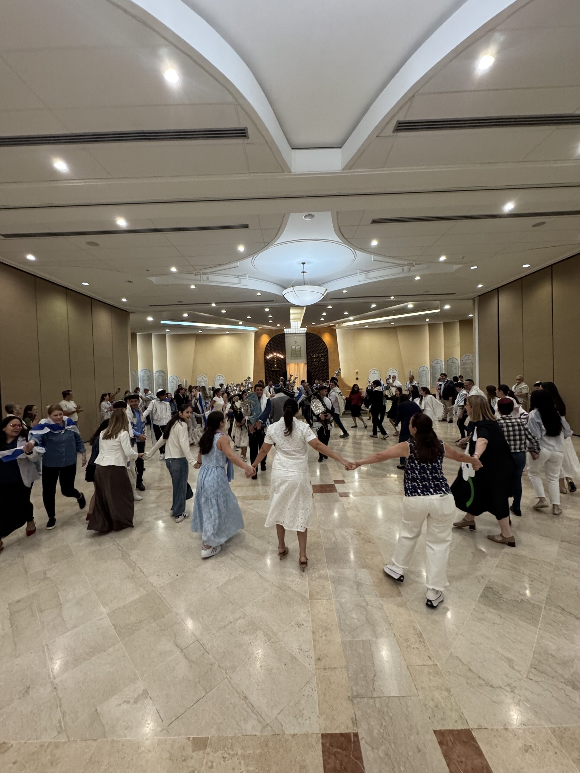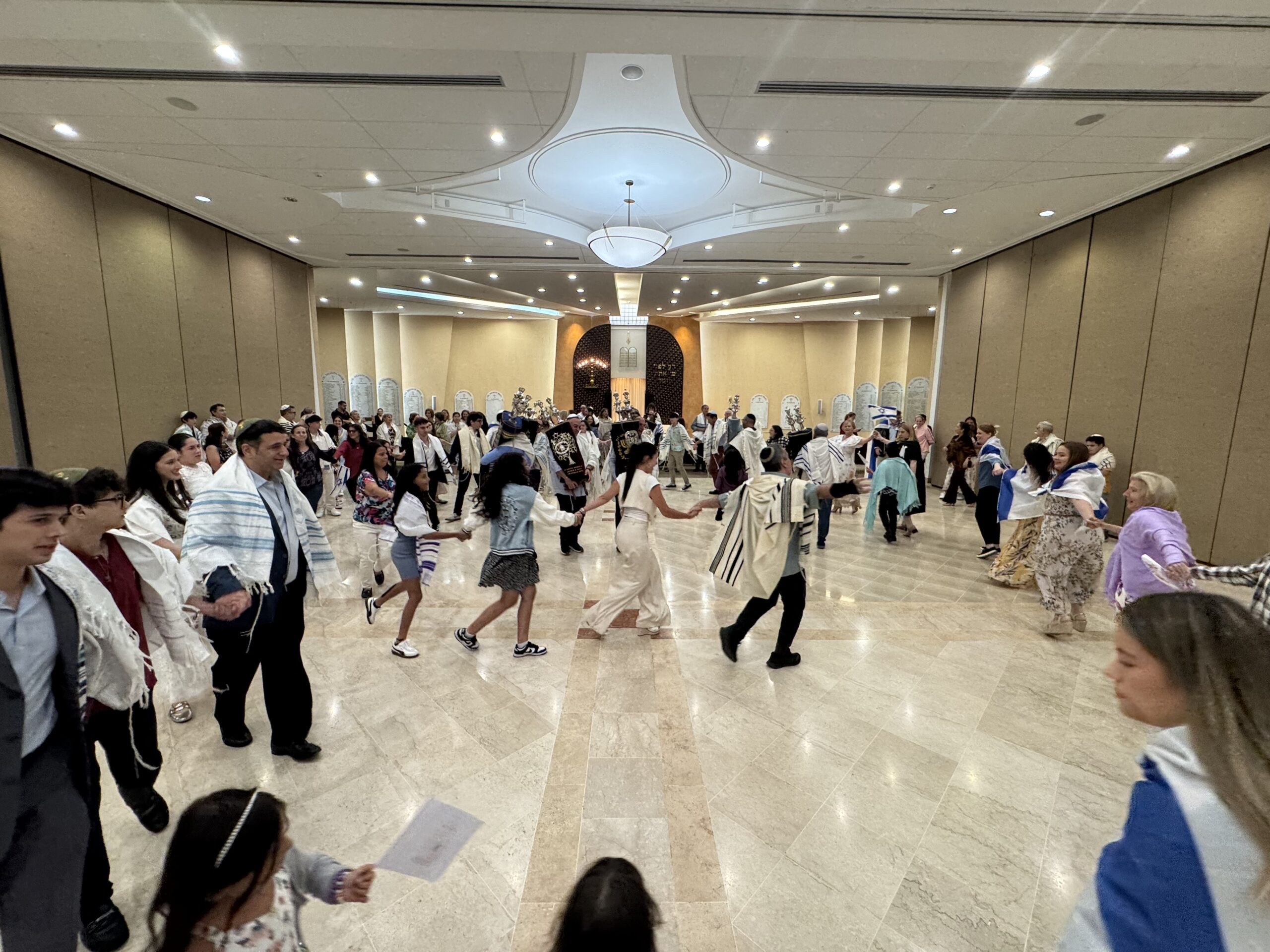 Con mucha alegría y entusiasmo celebramos Simjat Torá bailando, demostrando nuestra devoción por nuestro texto sagrado y festejamos que culminamos su lectura y la comenzamos nuevamente.