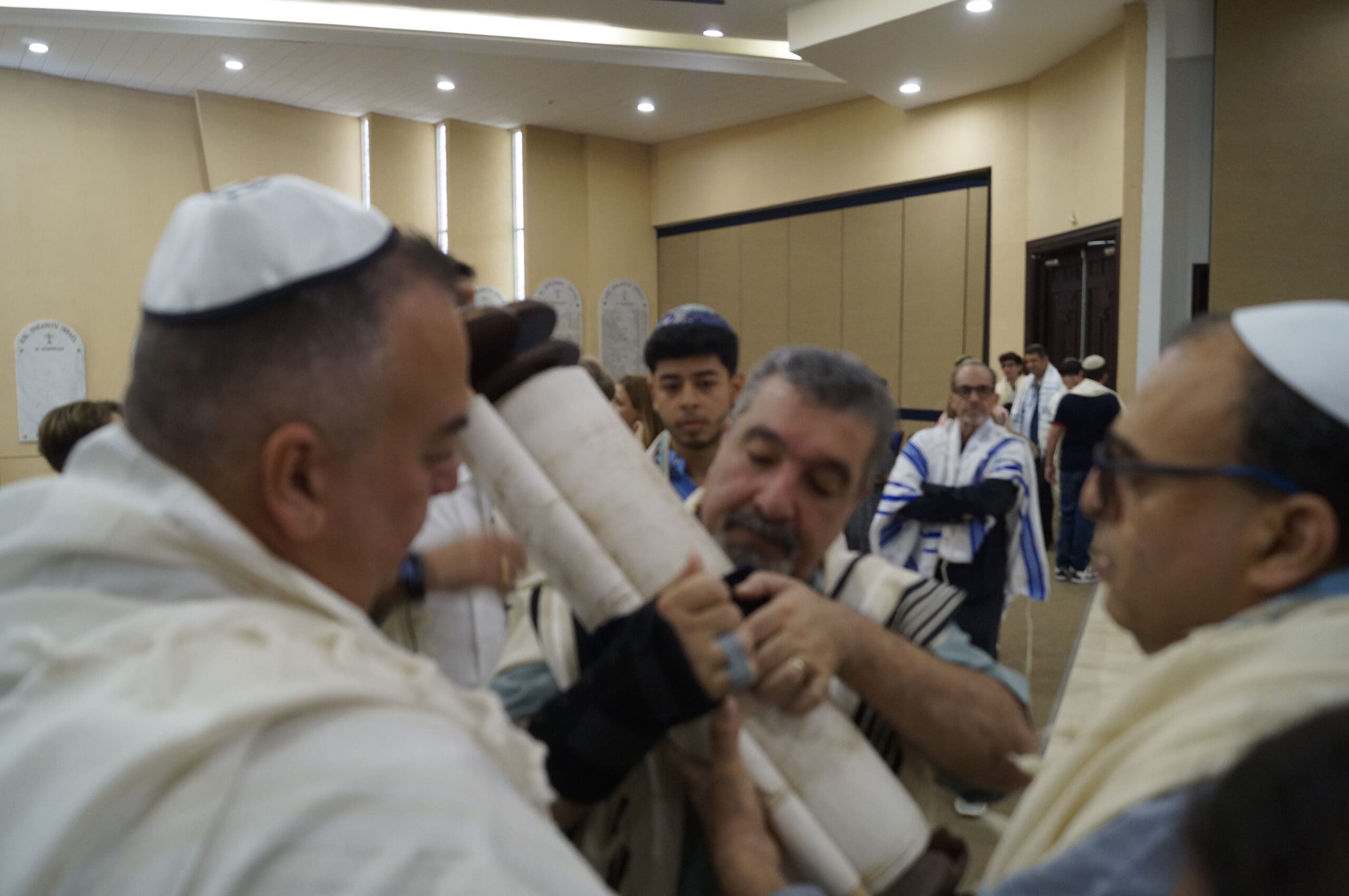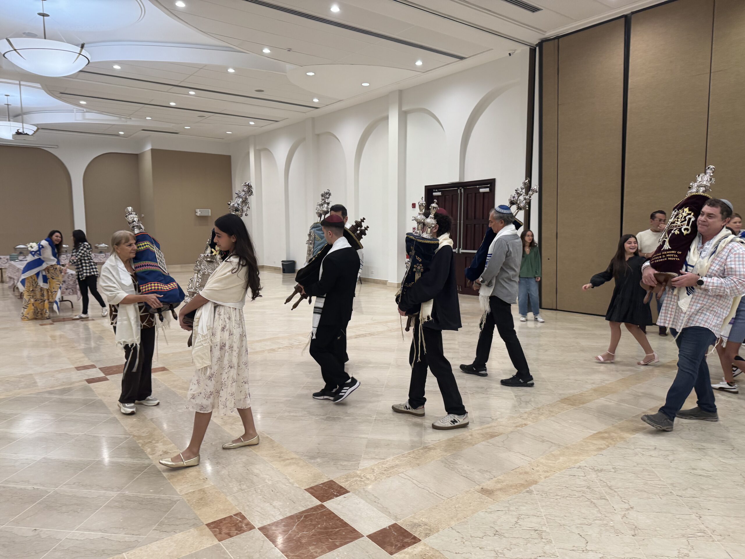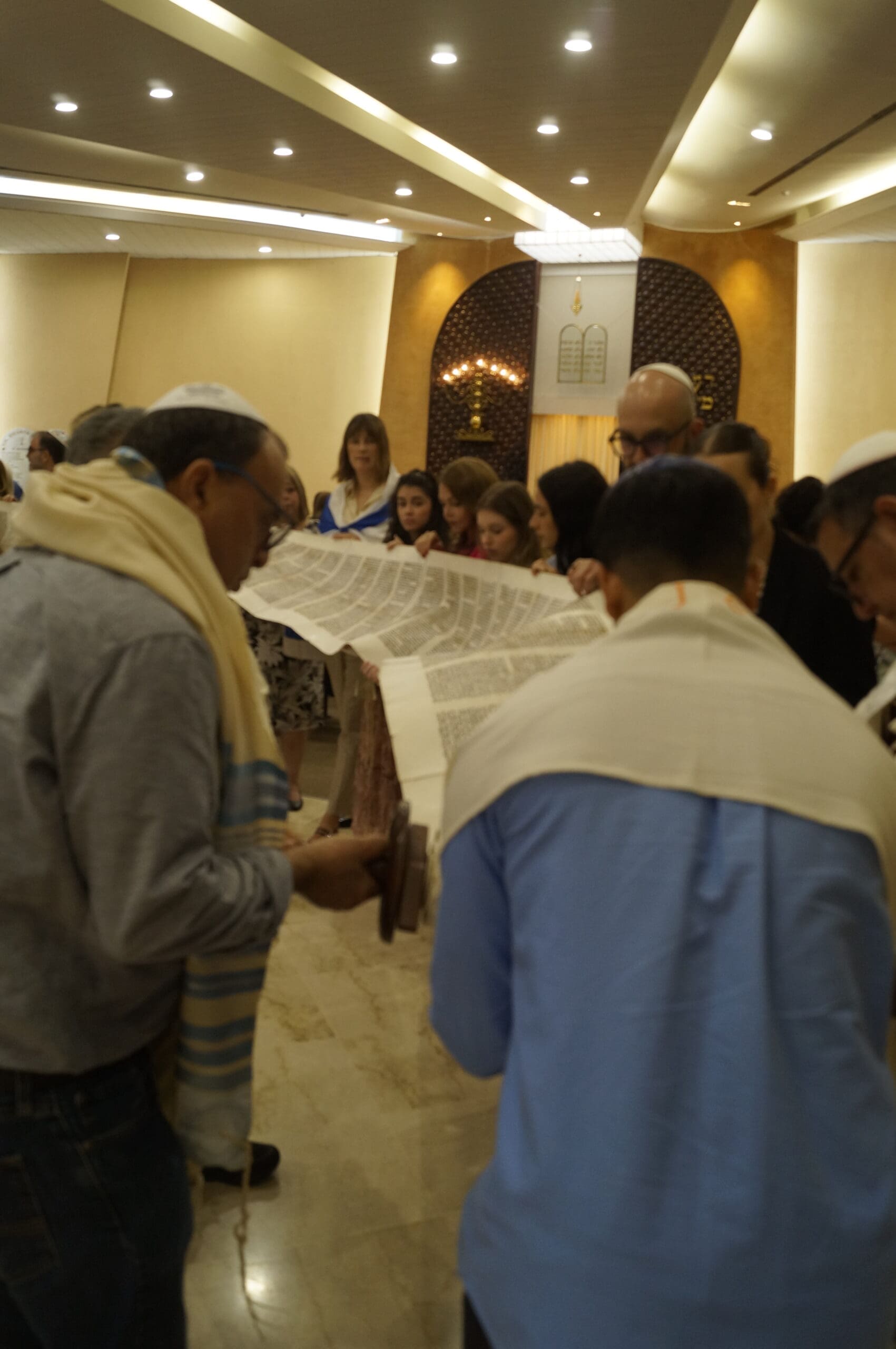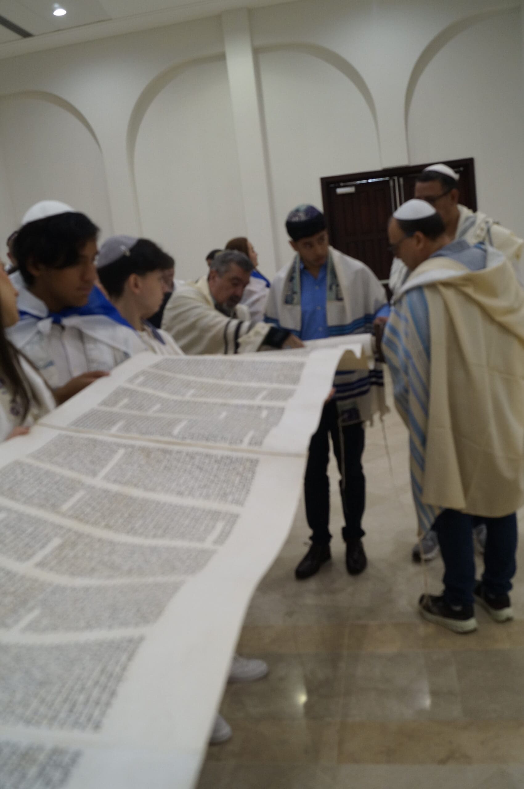 El miércoles, 15 de octubre por la mañana, además del baile, seguimos nuestra tradición de abrir completamente el rollo de la Torá. Posteriormente procedimos a leer los últimos pasajes de la Torá y el comienzo, nuevamente.