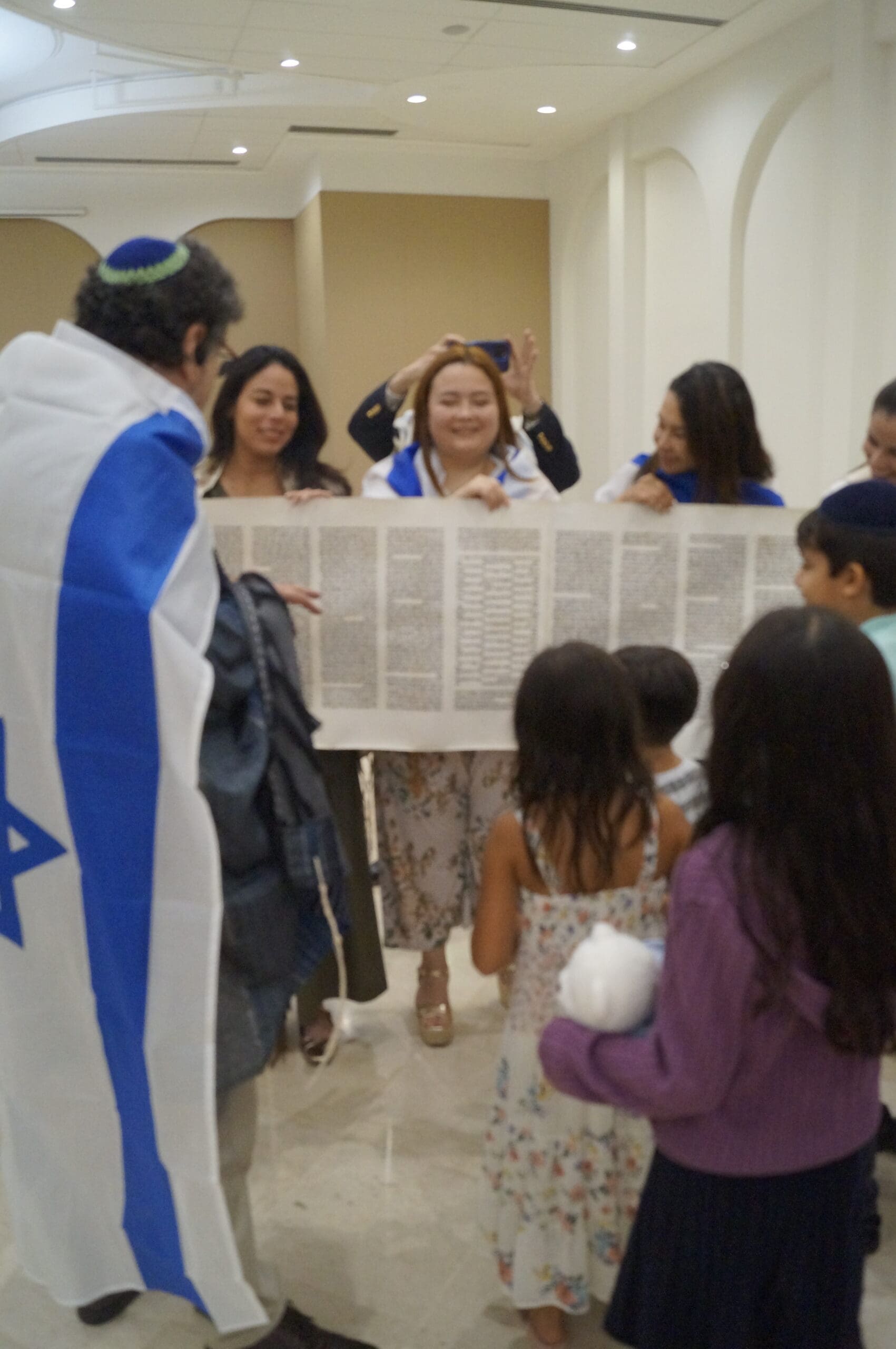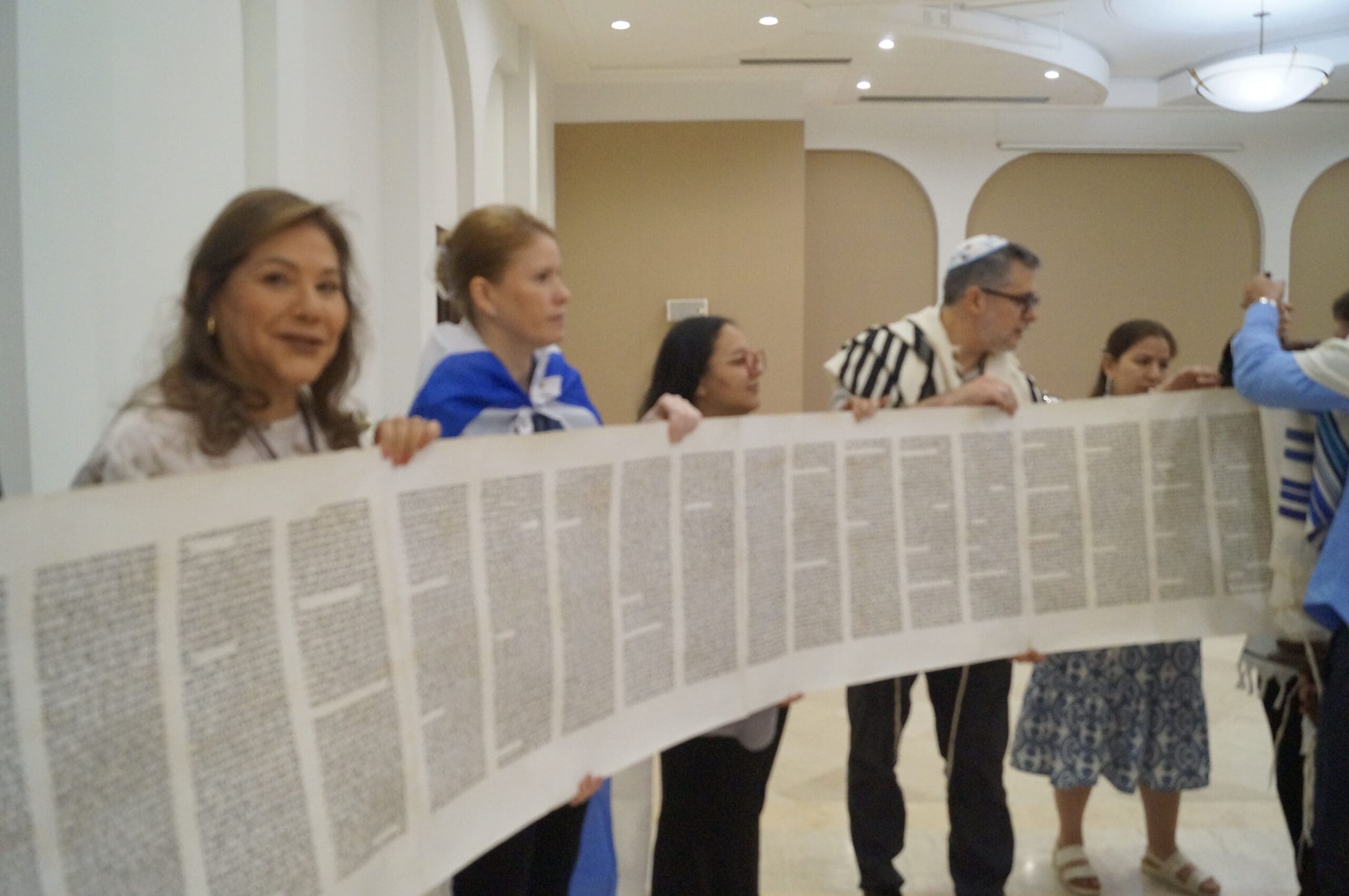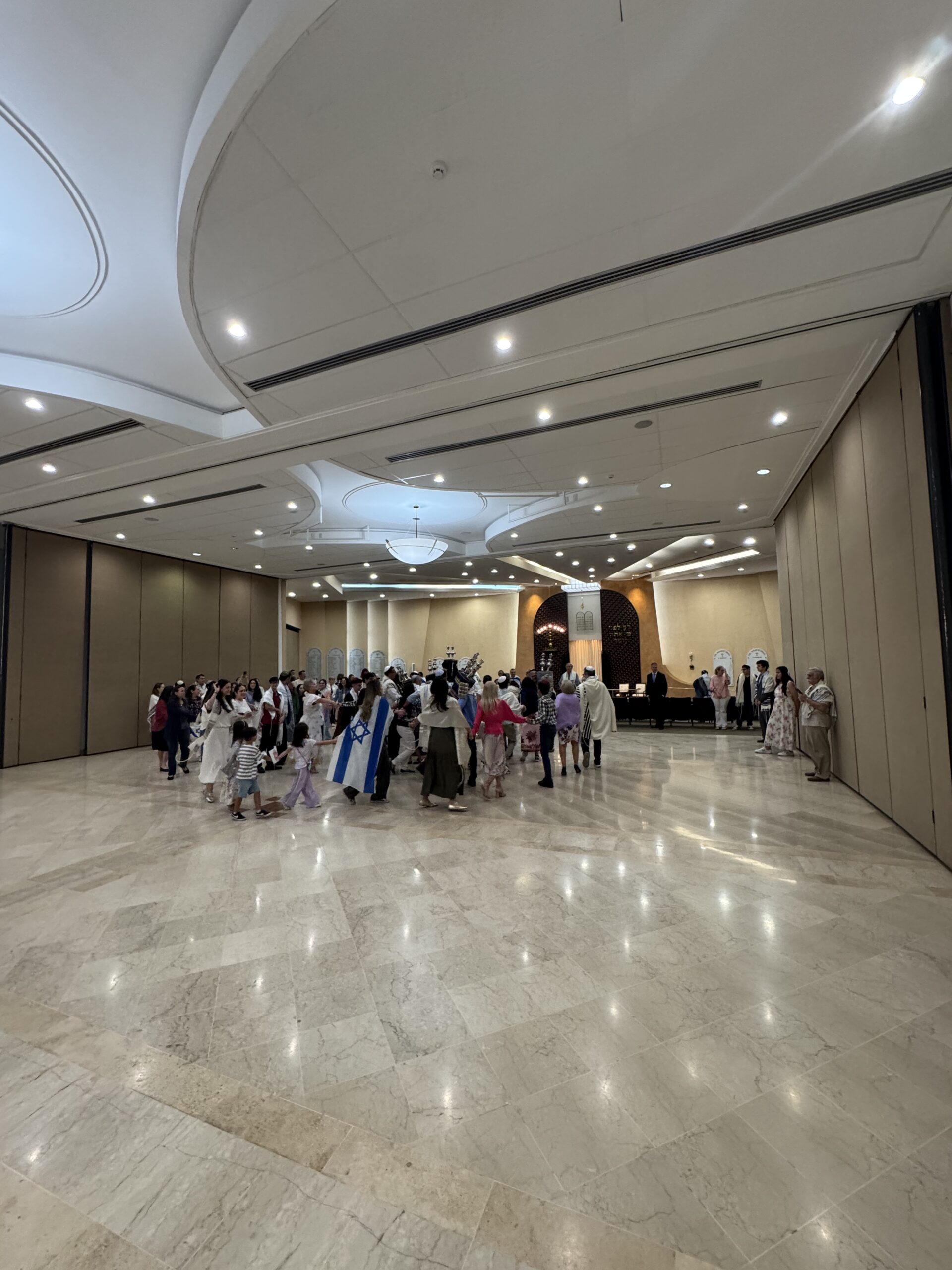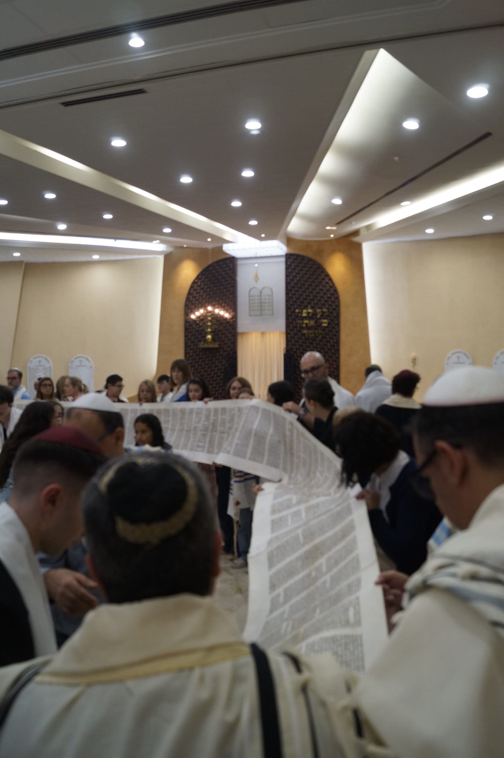El miércoles, 15 de octubre por la mañana, además del baile, seguimos nuestra tradición de abrir completamente el rollo de la Torá. Posteriormente procedimos a leer los últimos pasajes de la Torá y el comienzo, nuevamente.
