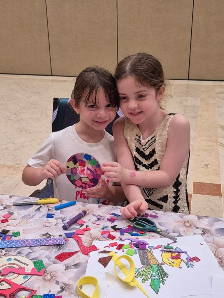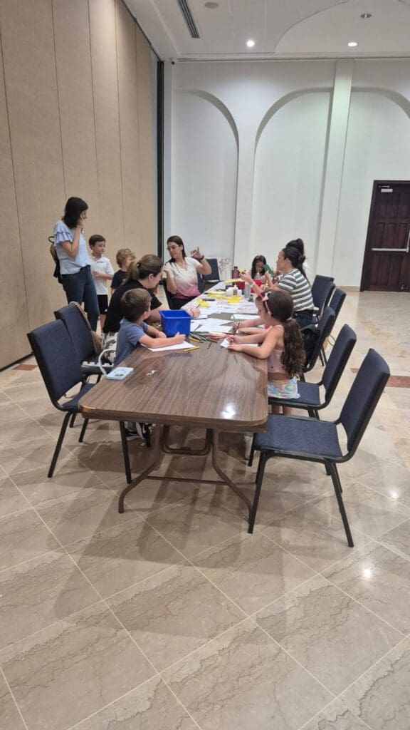 Mientras los adultos se encargaban de armar la estructura y colocar las palmas, los niños hacían dibujos y decoraciones para poner en la Sucá.