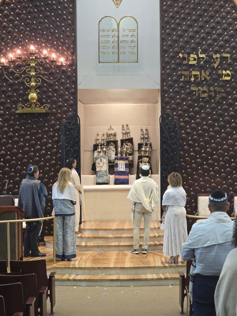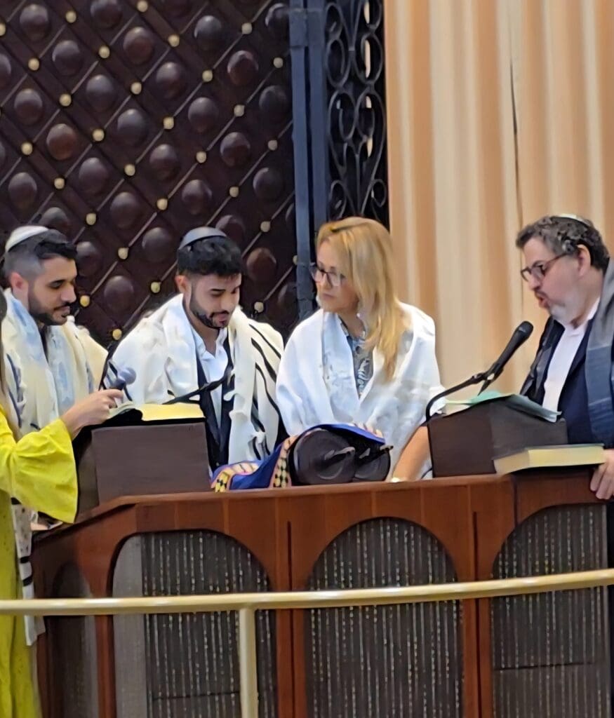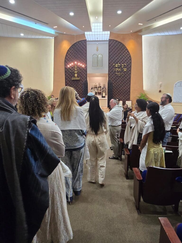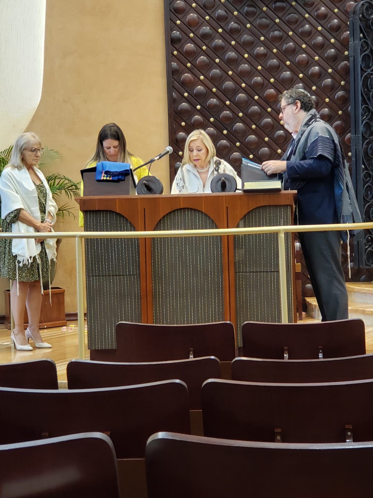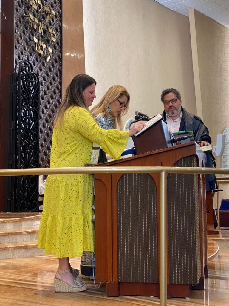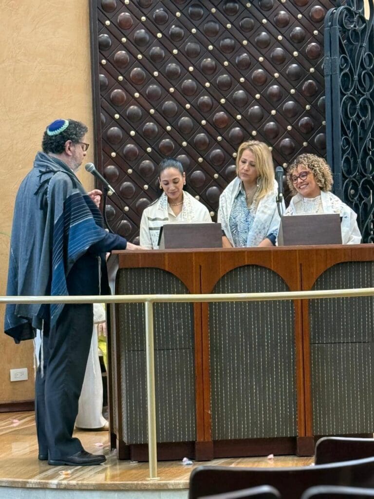 En un Shabat lleno de significado, el pasado 22 de noviembre, durante el rezo de Shajarit, nuestras queridas socias Sandra Mordok, Lilian Meilijson, Irlene Páez y Gina Aguilar vivieron un momento profundamente especial al subir a la Torá y leer de ella por primera vez, luego de concluir el primer curso de Bar y Bat Mitzvá para adultos.
