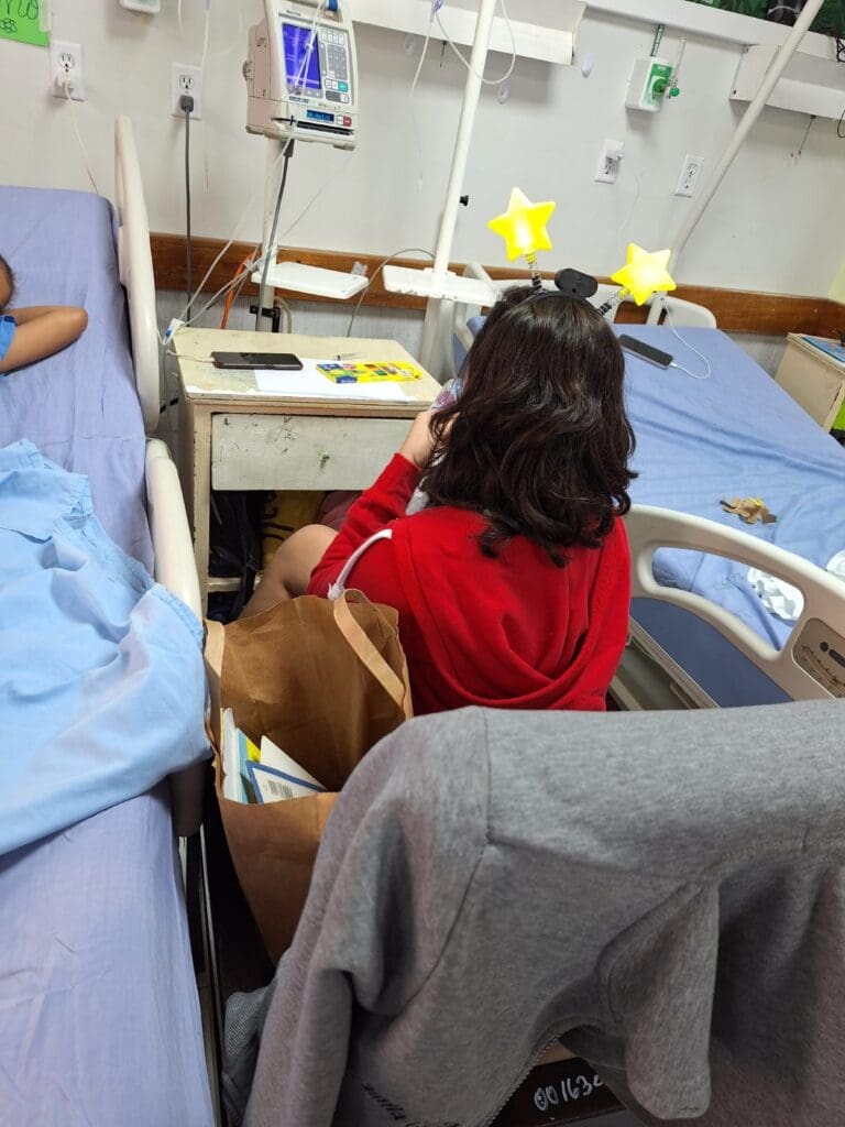 En mi proyecto de Tzedaká fui a dos salas diferentes del Hospital del Niño. Al entrar a la primera de ellas, saludé a cada niño, conversamos un ratito y les enseñé 2 ó 3 libros para que escogieran uno para leerles.