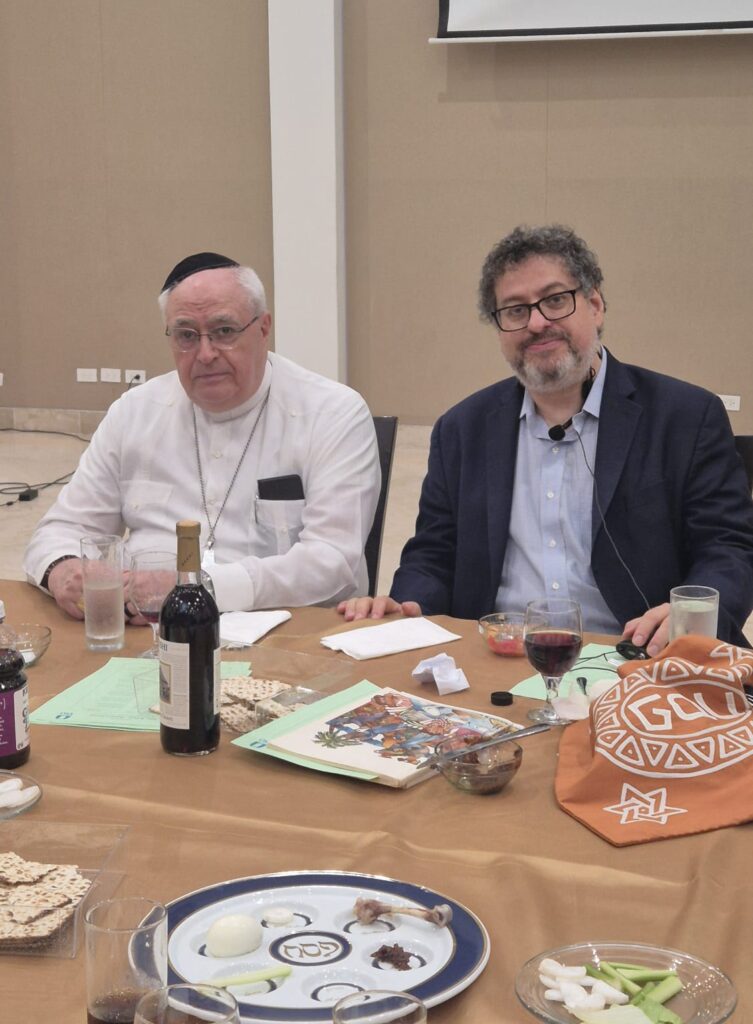 Cerca de 100 invitados, entre líderes y miembros de comunidades católicas, cristianas y musulmanas, se dieron cita en el centro comunitario para participar en una experiencia única: una demostración del Séder de Pésaj, guiada por el rabino Gustavo Kraselnik.