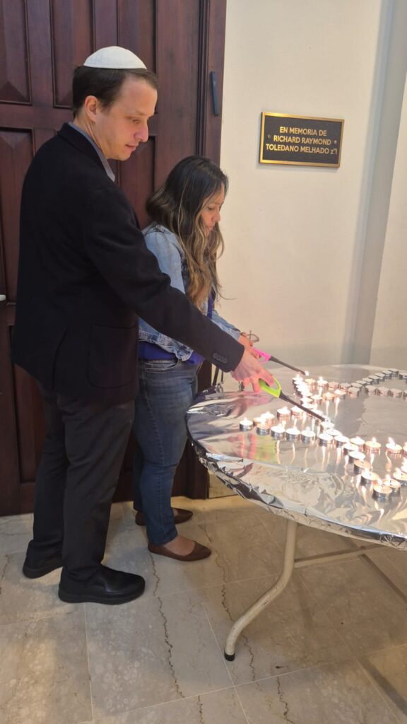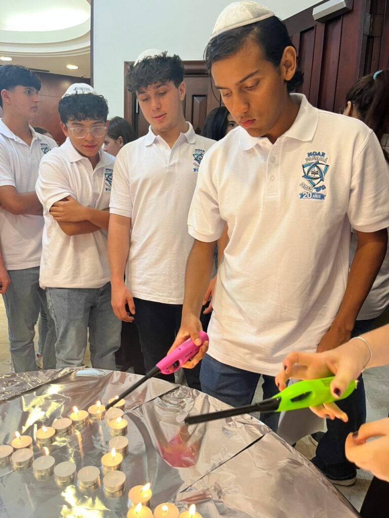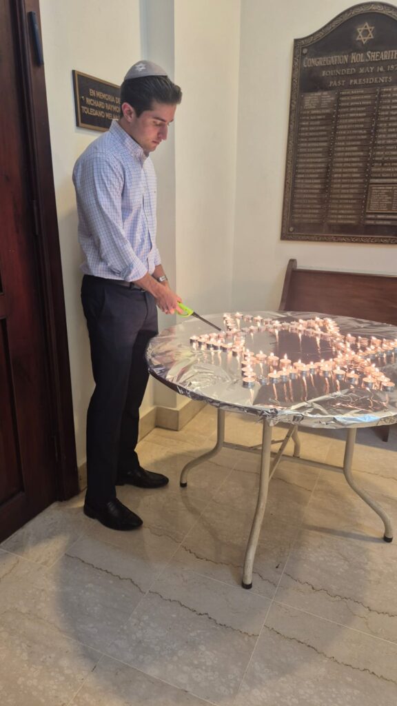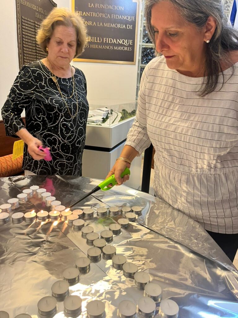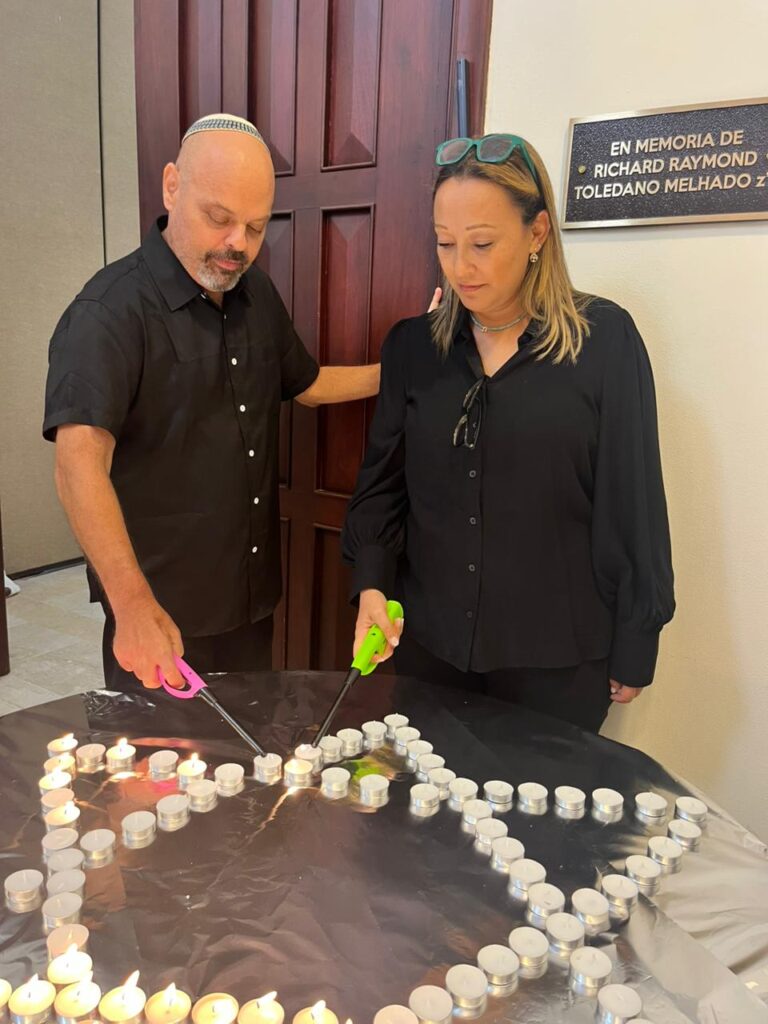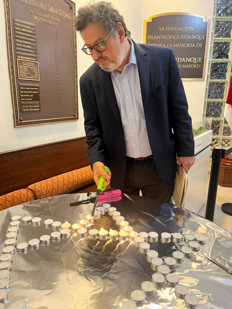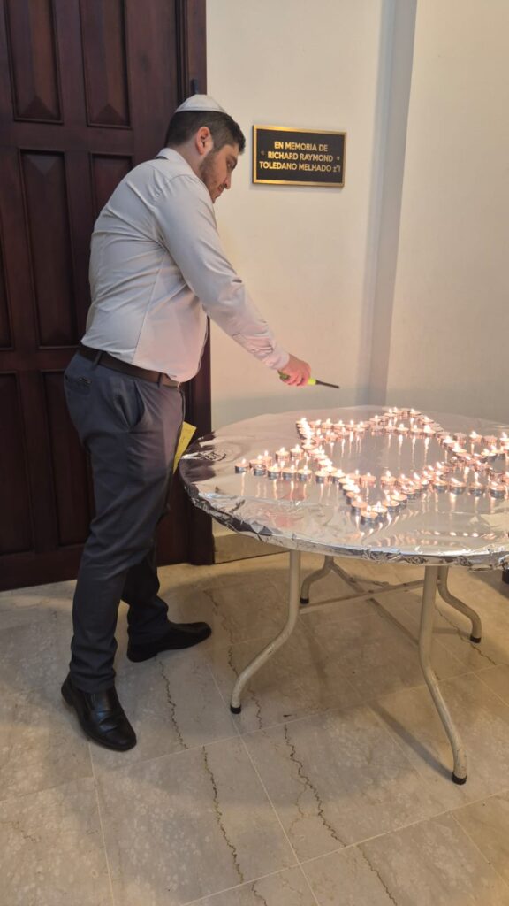 La ceremonia inició desde la entrada, donde cada asistente encendió una vela. Juntas, formaron una estrella de David, símbolo de identidad y memoria colectiva.