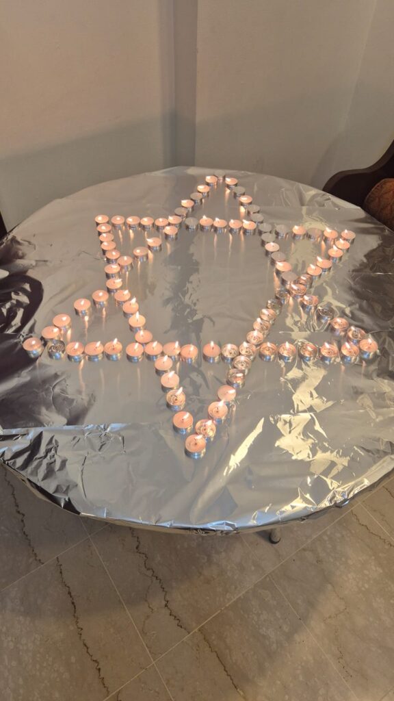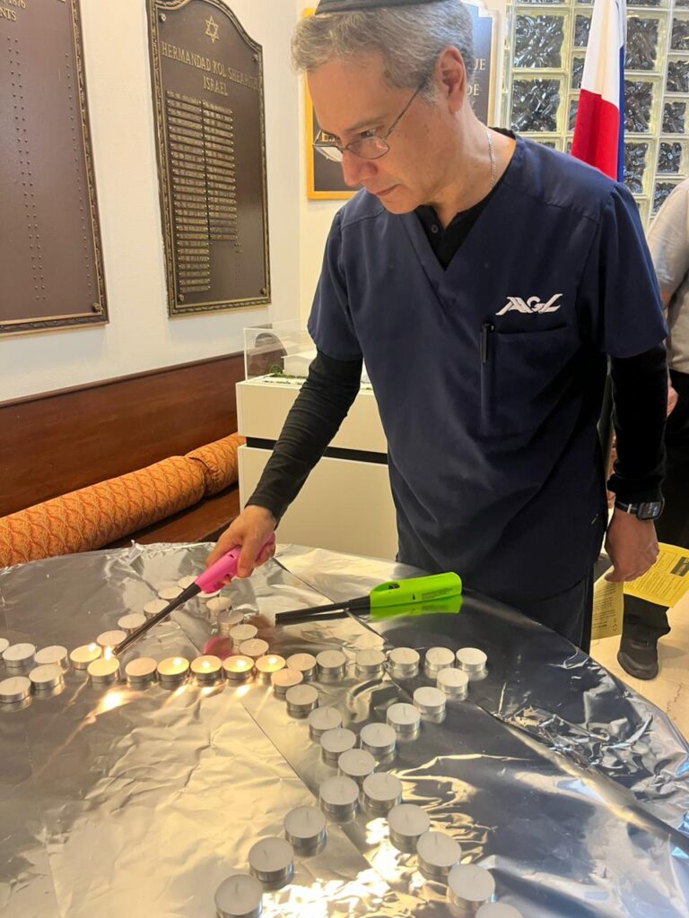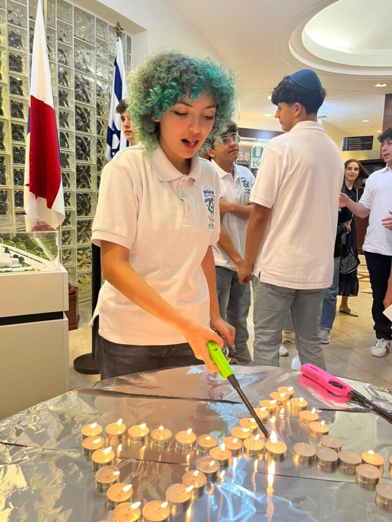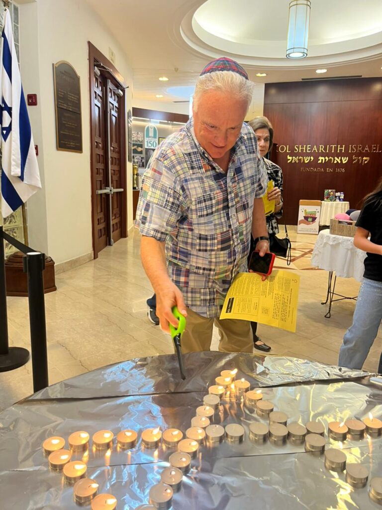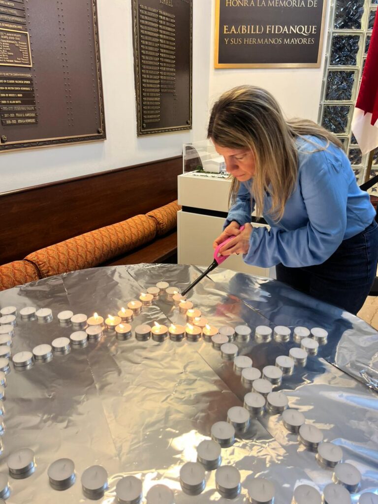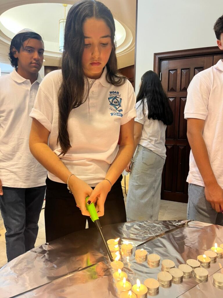 La ceremonia inició desde la entrada, donde cada asistente encendió una vela. Juntas, formaron una estrella de David, símbolo de identidad y memoria colectiva.