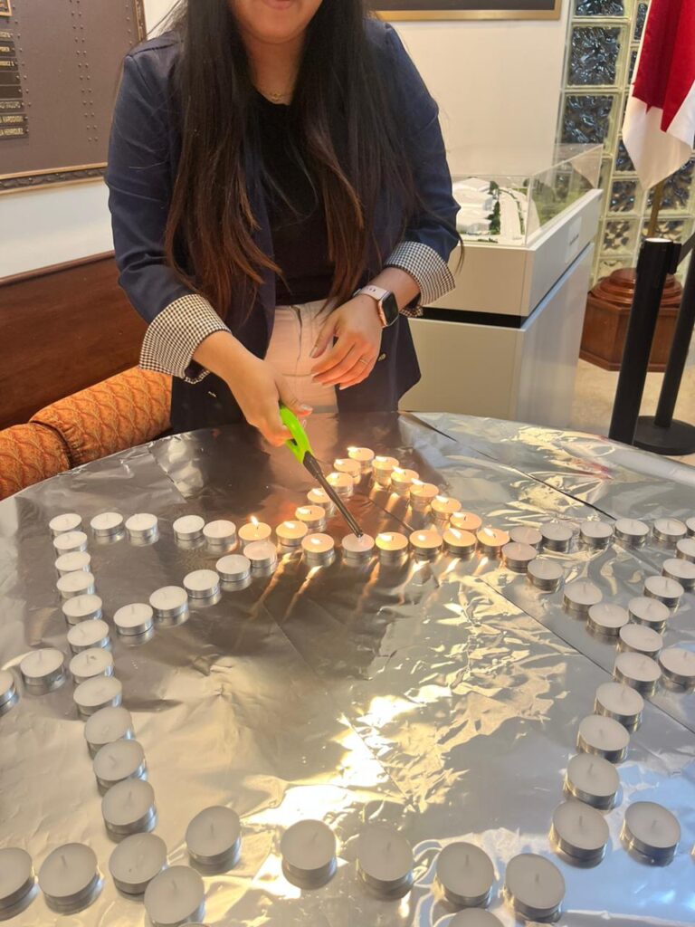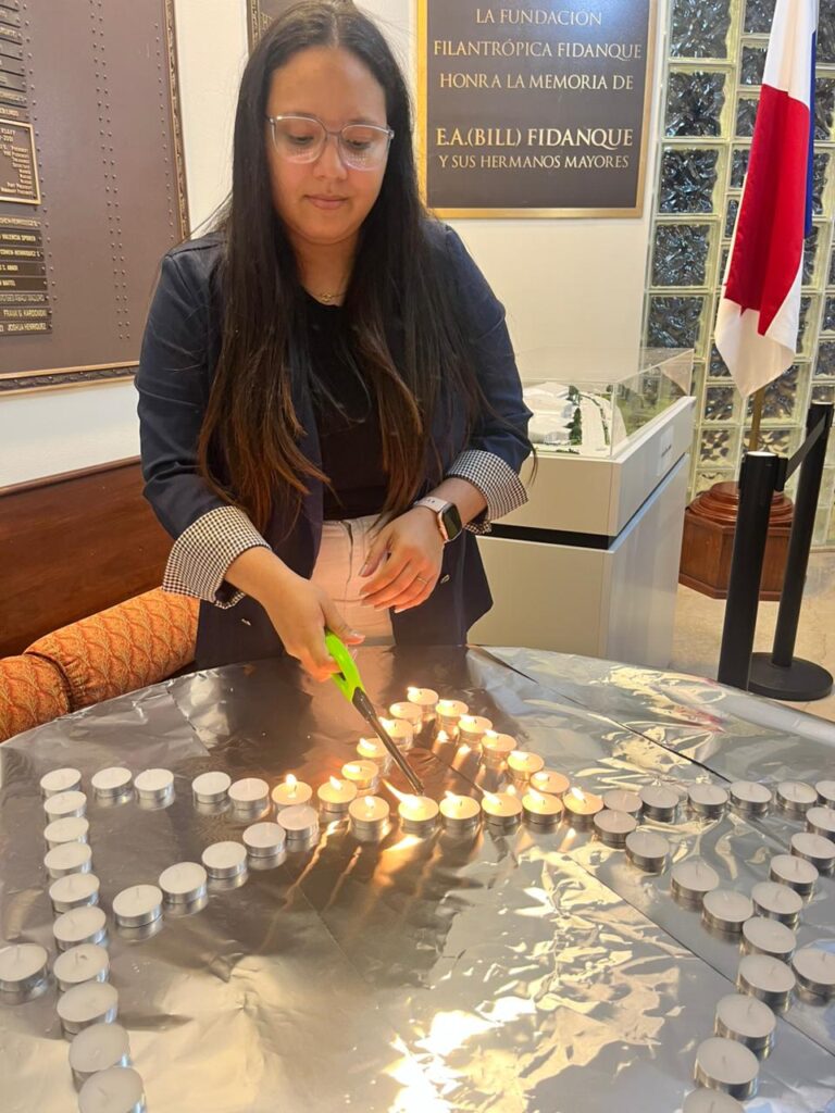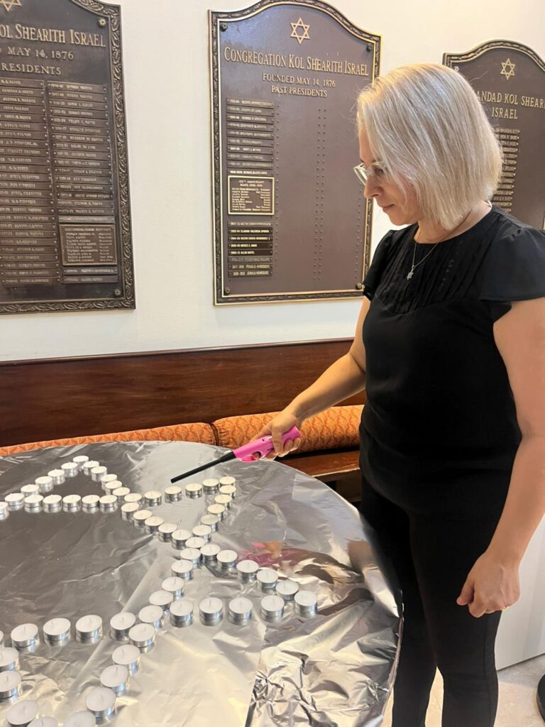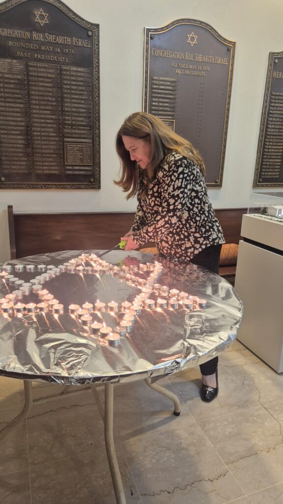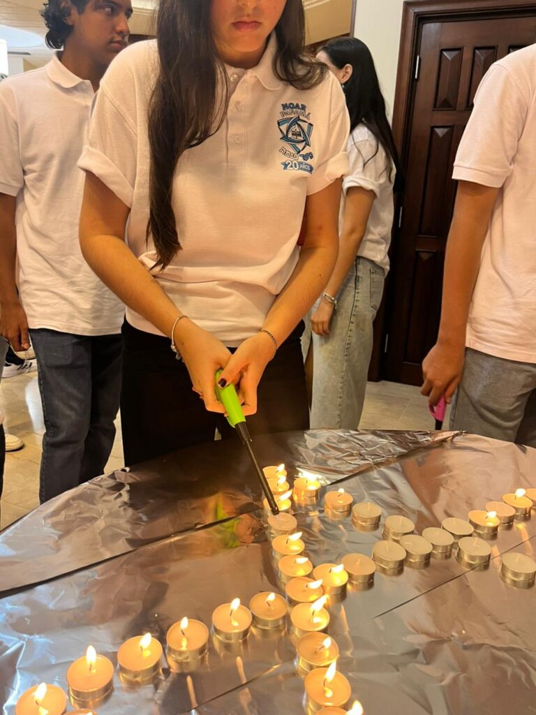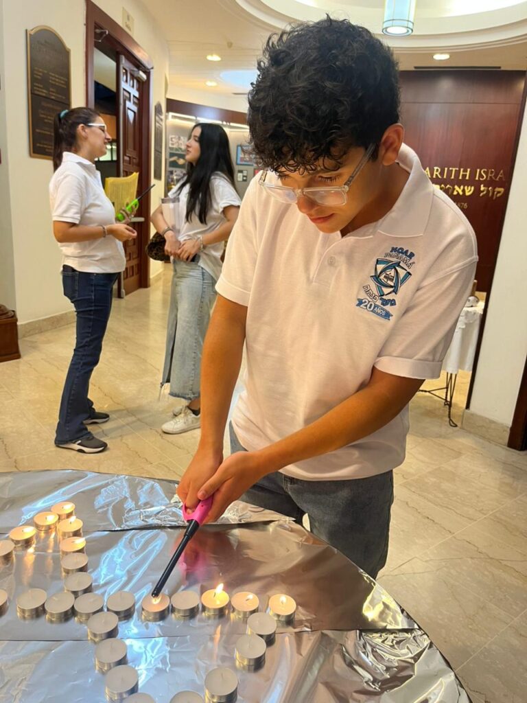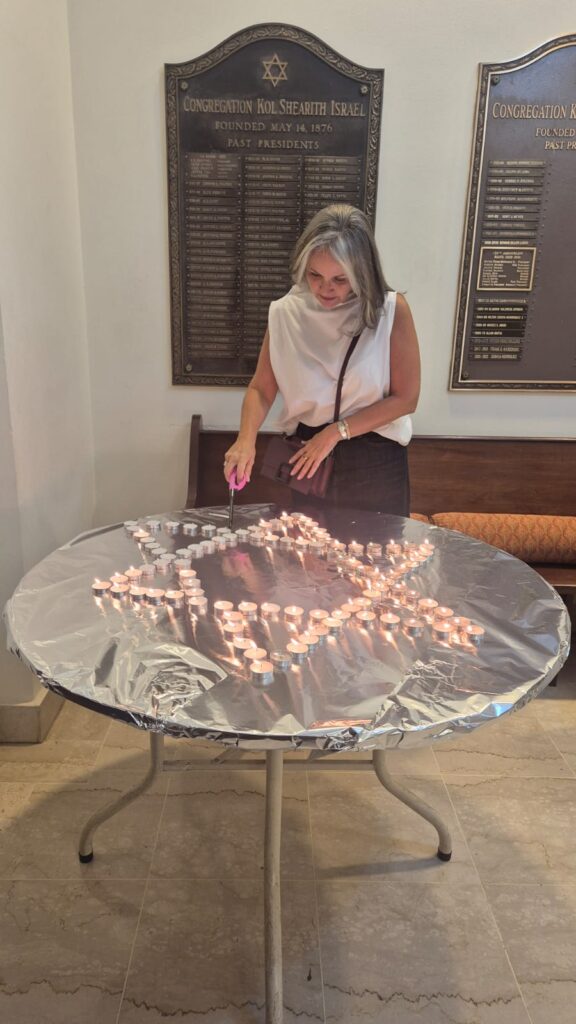 La ceremonia inició desde la entrada, donde cada asistente encendió una vela. Juntas, formaron una estrella de David, símbolo de identidad y memoria colectiva.