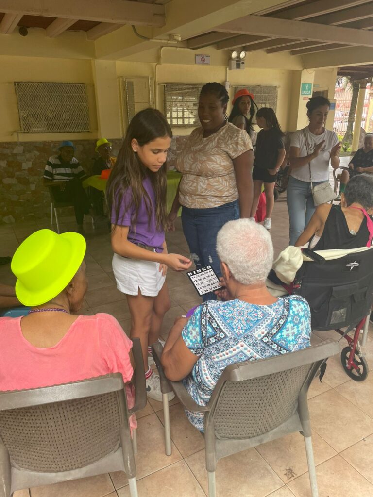 Jugamos bingo y ayudé a celebrar el cumpleaños de una abuelita. Fue una experiencia muy bonita, ya que poder celebrar y compartir con los abuelitos me hizo sentir feliz al ver su alegría.