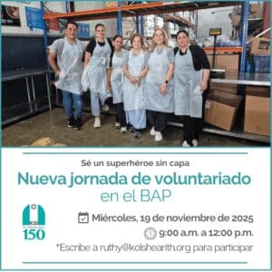 Próximas actividades Jornada de voluntariado de noviembre en el BAP Leer más Majané Darkeinu 2025 Leer más Solicite ahora sus jalot de diciembre Leer más Por segundo año consecutivo regresa los Noar Choice Awards Leer más Cine-foro de la semana: The Collini Case Leer más Exhibición Voces del dolor Leer más Cargar más