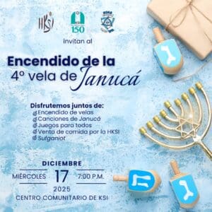 Próximas actividades Encendido de la tercera vela de Janucá Leer más Jornada de voluntariado de diciembre en el BAP Leer más Encendido público de la primera vela de Janucá en Town Center Leer más Majané Darkeinu 2025 Leer más Cine-foro de la semana: Filip Leer más Celebración del 150° aniversario de la Congregación Kol Shearith Israel Leer más